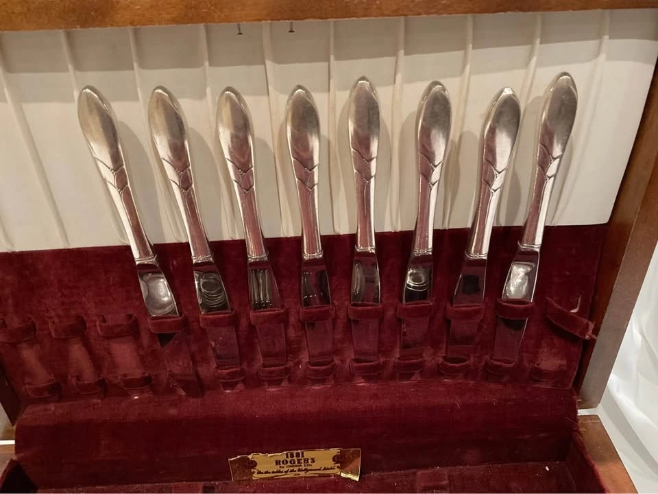 Vintage 1881 Rogers Oneida Silverware Set Wood Case