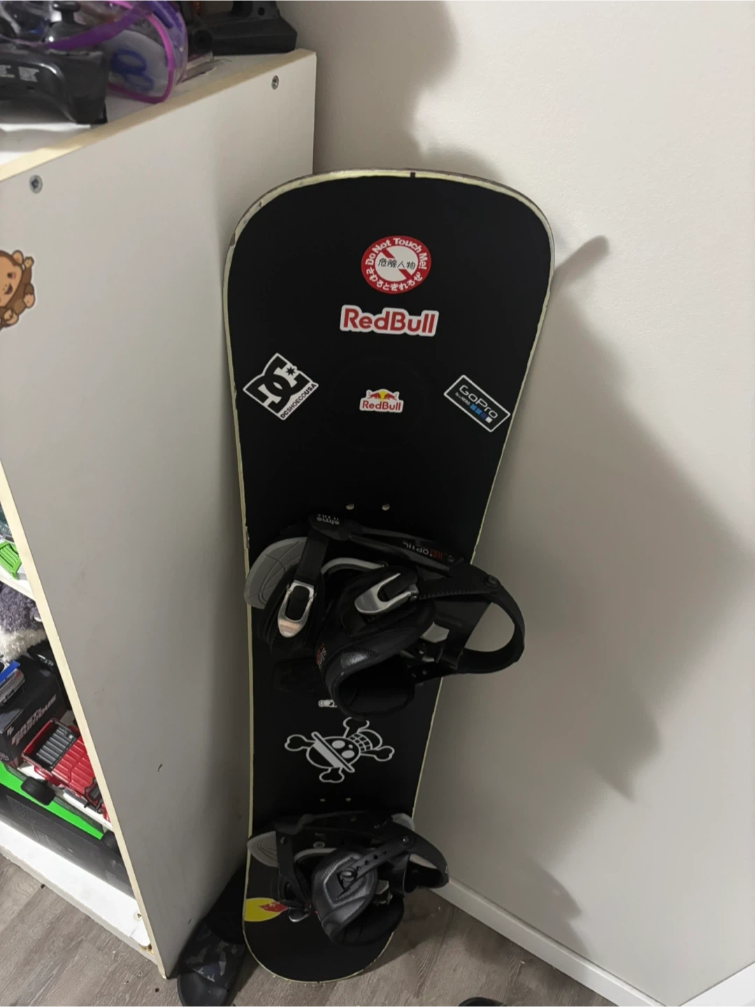 This is an Oxygen snowboard with bindings. It comes with 1 extra M-size ride binding, but the right binding has a broken strap. It's still wearable and doesn't affect rides. It's 153cm and an M-size slim brand binding. Great for hitting the slopes!