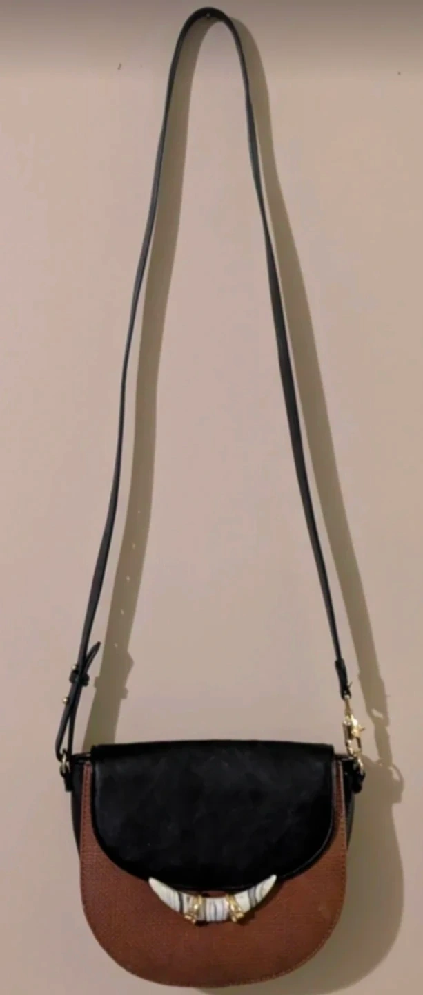 Brown and Black Saddle Bag with Tusk-like Clasp