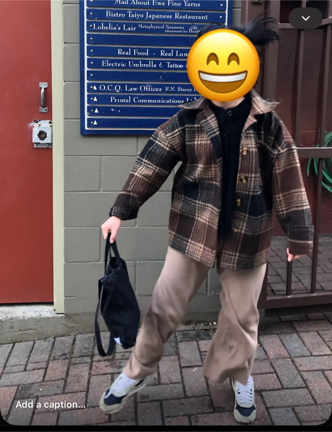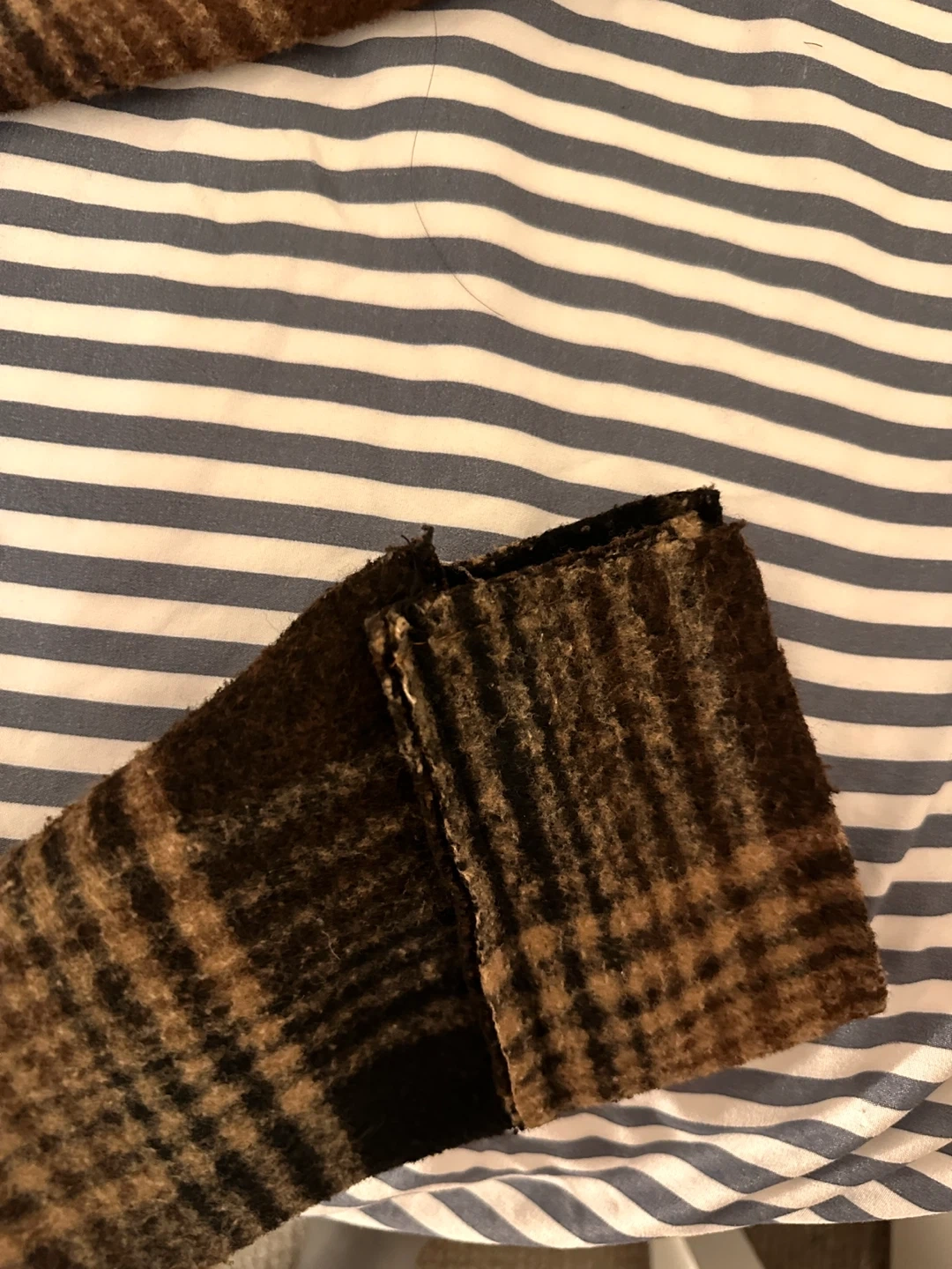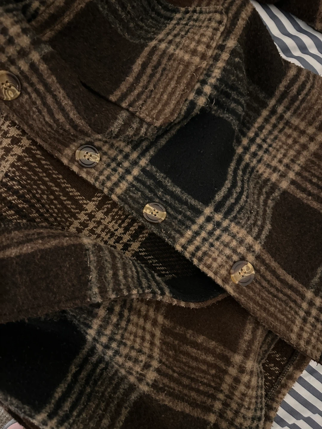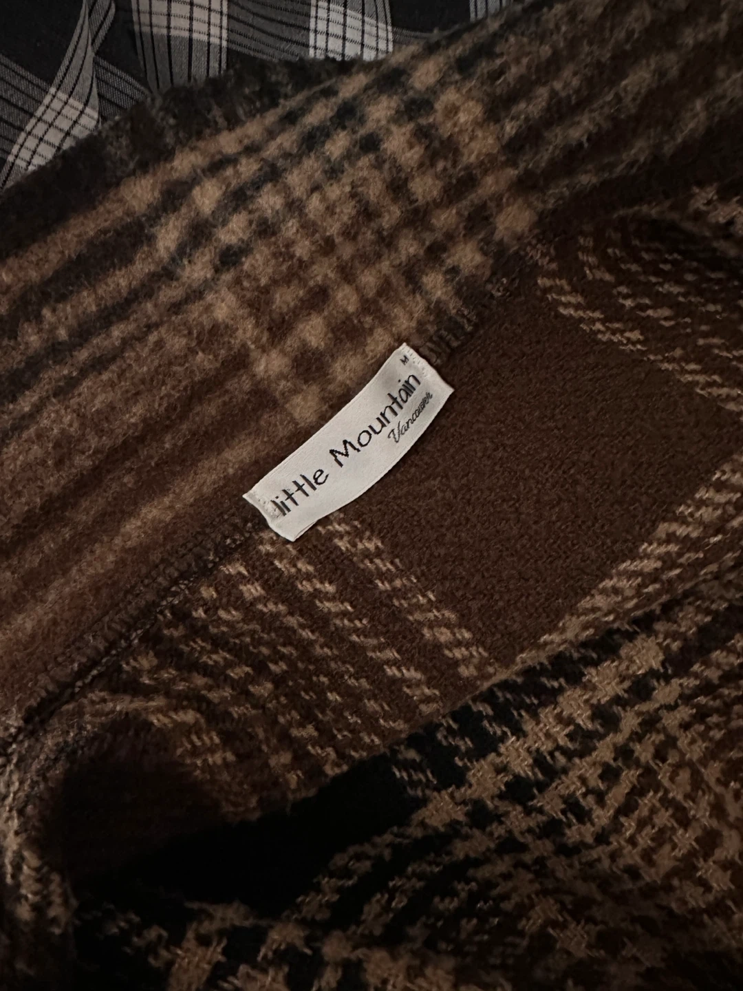 This is a Little Mountain Vancouver plaid shacket. It's a size medium and made from a warm, fuzzy material. Perfect for layering on cooler days!