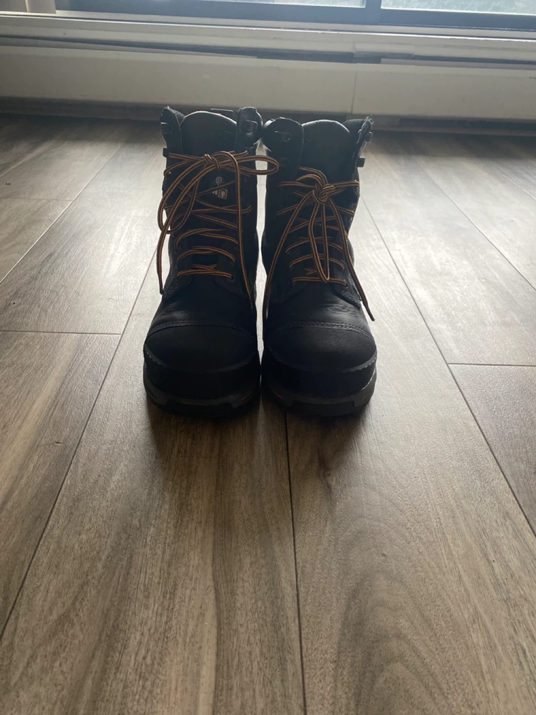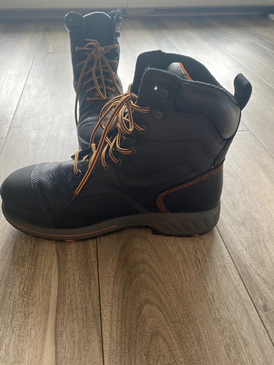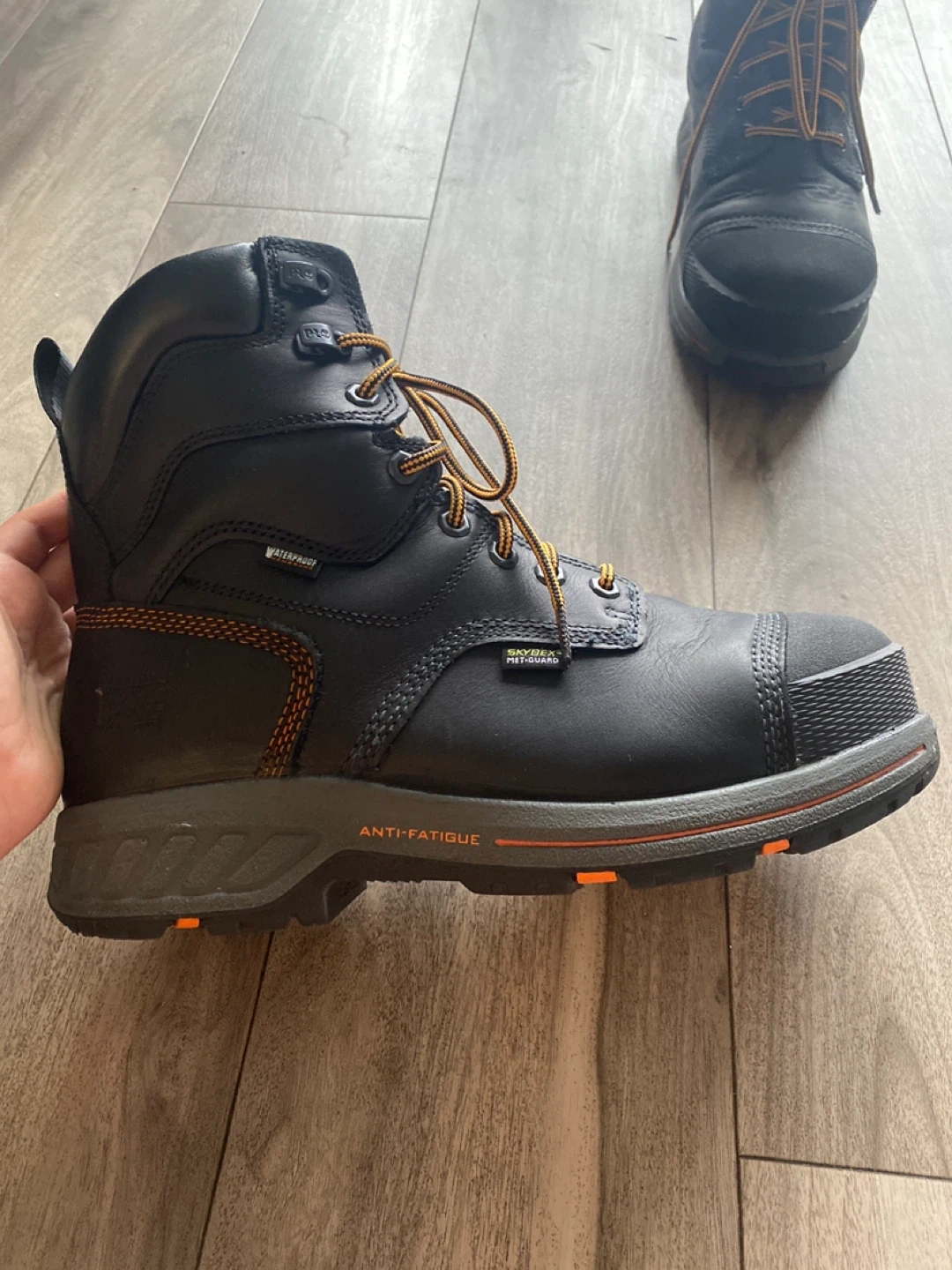 Timberland PRO work boots in black. Features anti-fatigue technology and ReBOTL material. Waterproof design. Size 9 UK 10 CANADA hard toe boot