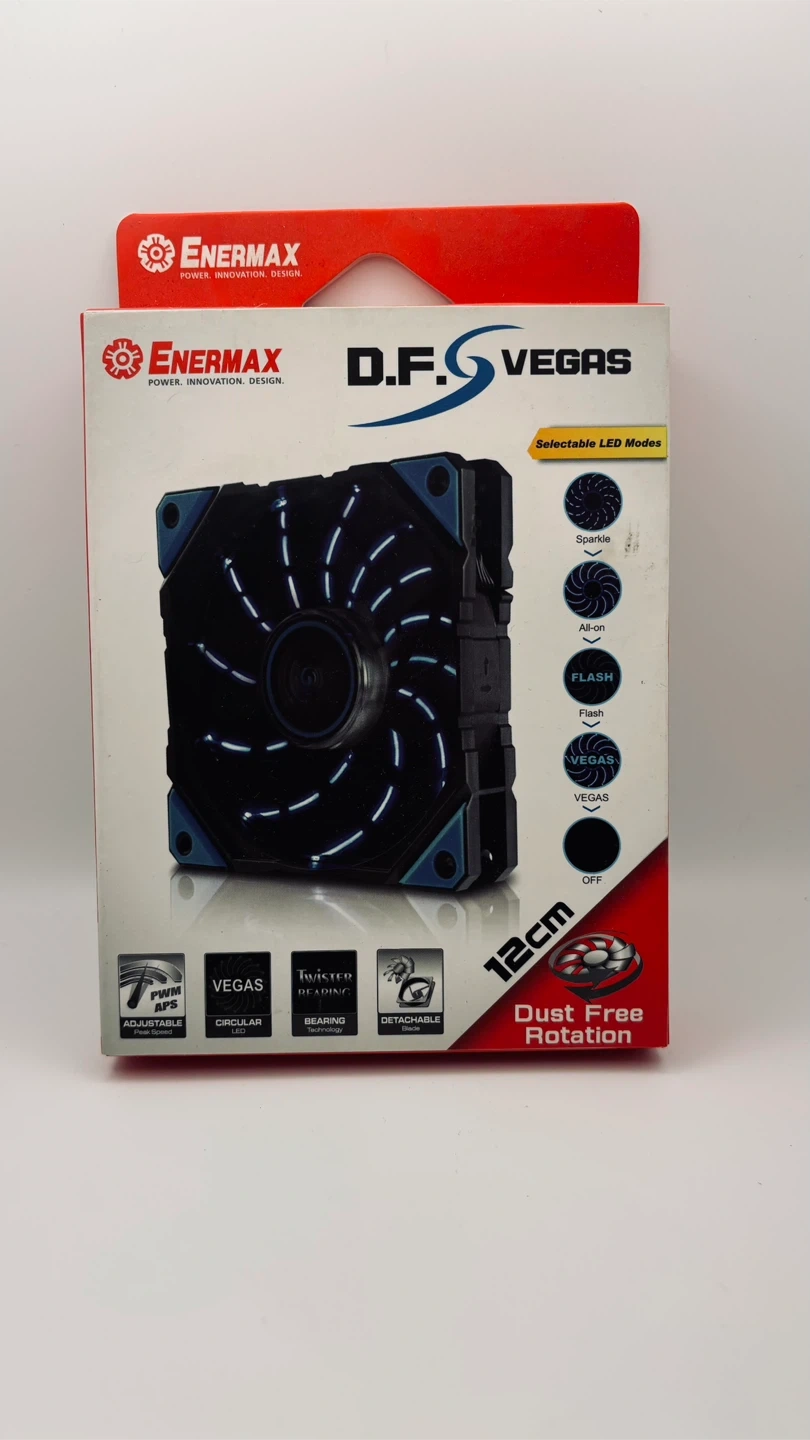 Selling an Enermax D.F. Vegas 12cm case fan! This fan features patented DFR technology for dust-free rotation and adjustable peak speed control. It also has selectable LED modes for a cool lighting effect. The box is included! Selling this item in great condition — clean, well-kept, and from a smoke-free, pet-free home.