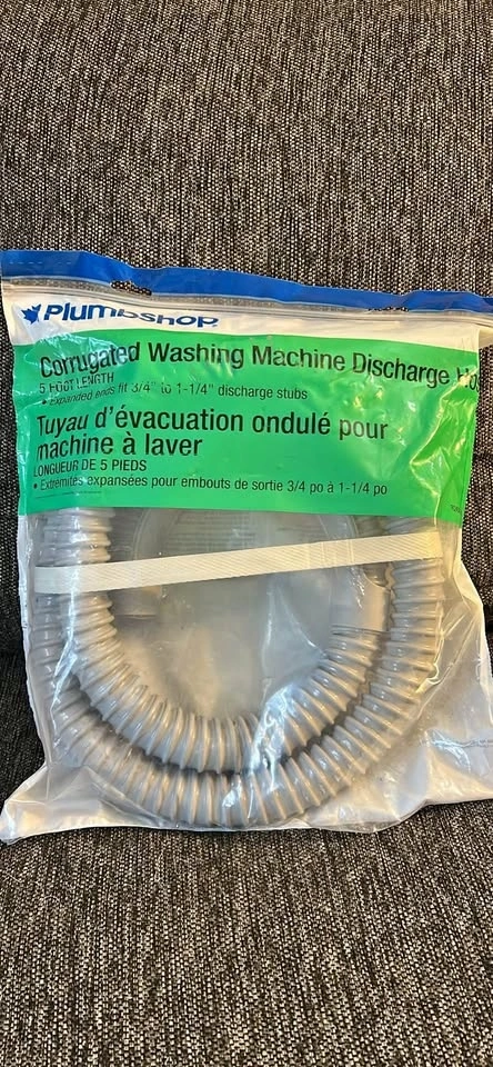 Still sealed, never opened. 5’ Corrugated washing machine discharge hose. Ends fit 3/4” to 1 1/4” discharge stubs. Pickup by the lift locks in Peterborough.