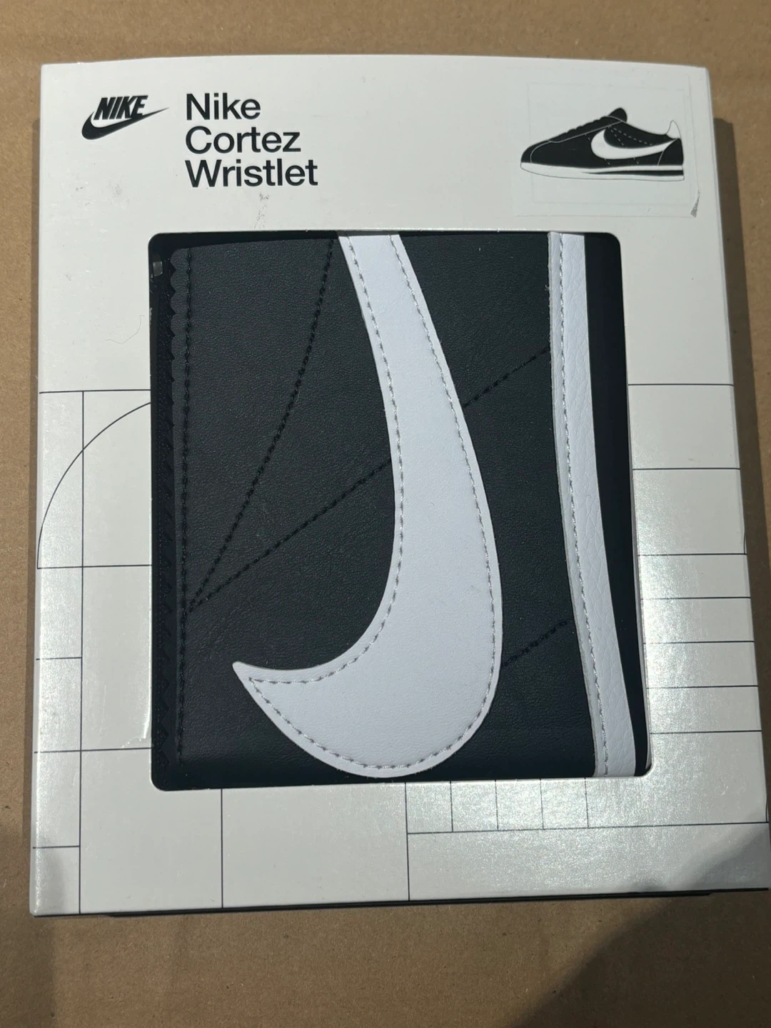 Brand new Nike Cortez Wristlet wallet. It's black with the iconic white Swoosh. Includes original packaging. Payed $50 selling for $20