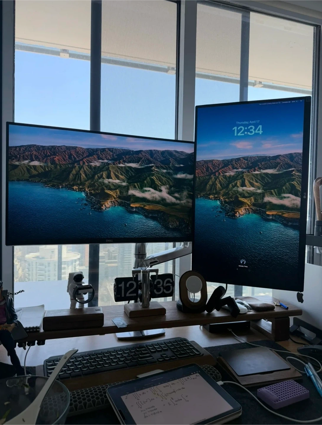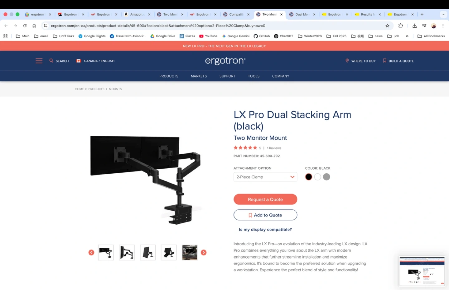 This is an Ergotron LX Pro Dual Stacking Arm two-monitor mount. Can hold two displays and one arm can become laptop tray. Original Price 800cad, super good quality.