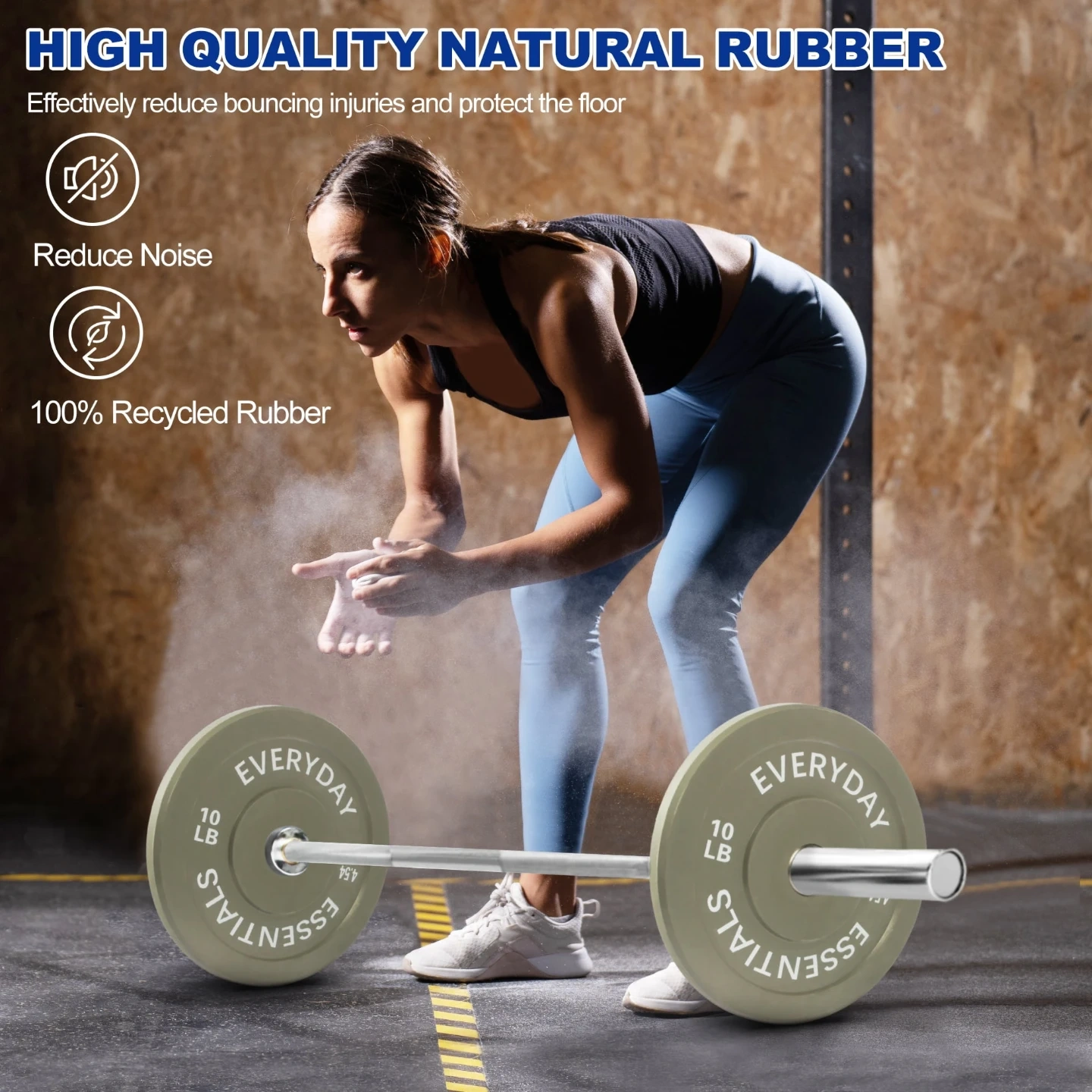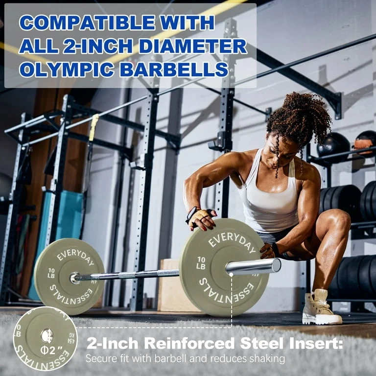 Set of two 10 LB weight plates made from high-quality natural rubber. Compatible with all 2-inch diameter Olympic barbells. Features a 2-inch reinforced steel insert for a secure fit.
