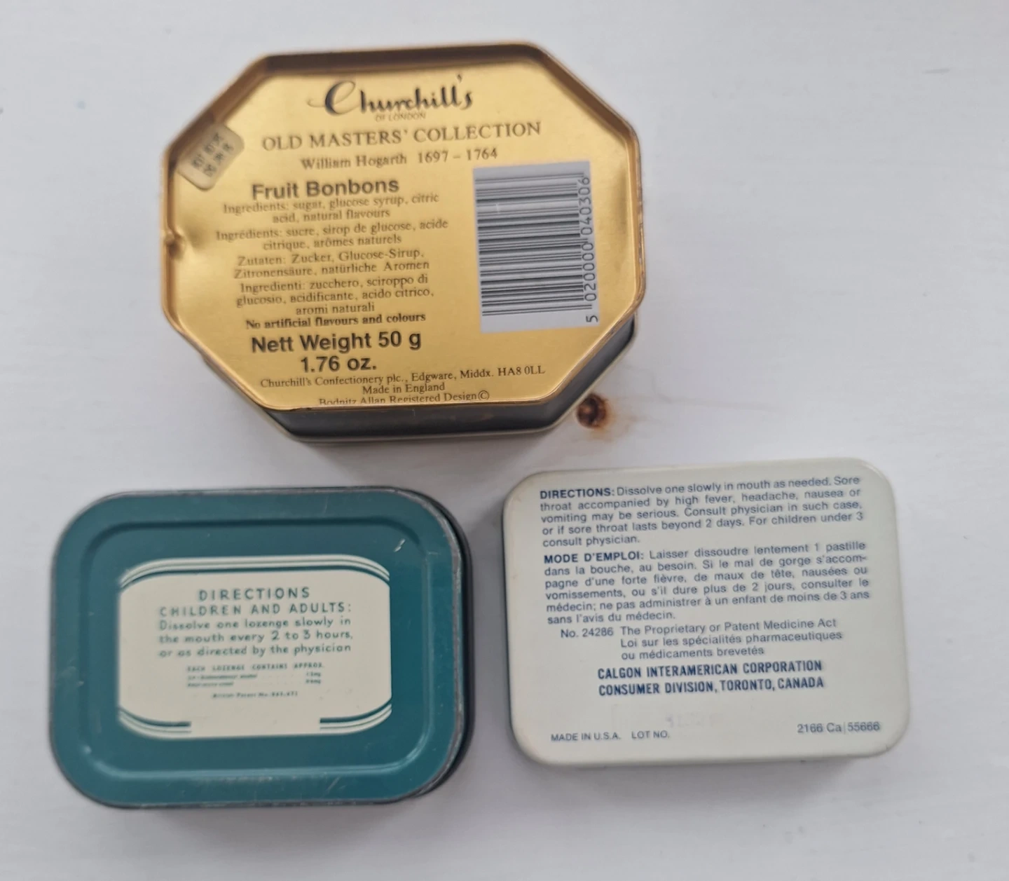 Vintage Churchill's, Strepsils, Sucrets Tins