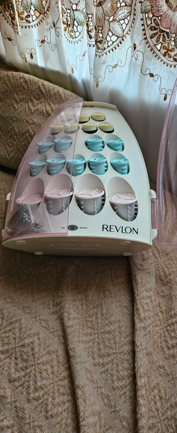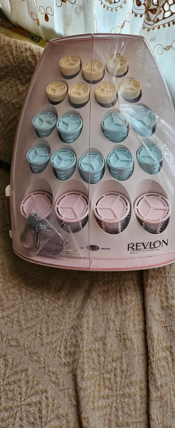 Revlon heated roller set with multiple sizes of rollers. Includes clips. Unit heats up and is ready for use. This is item is barely use since I have a thin and fine hair now.
