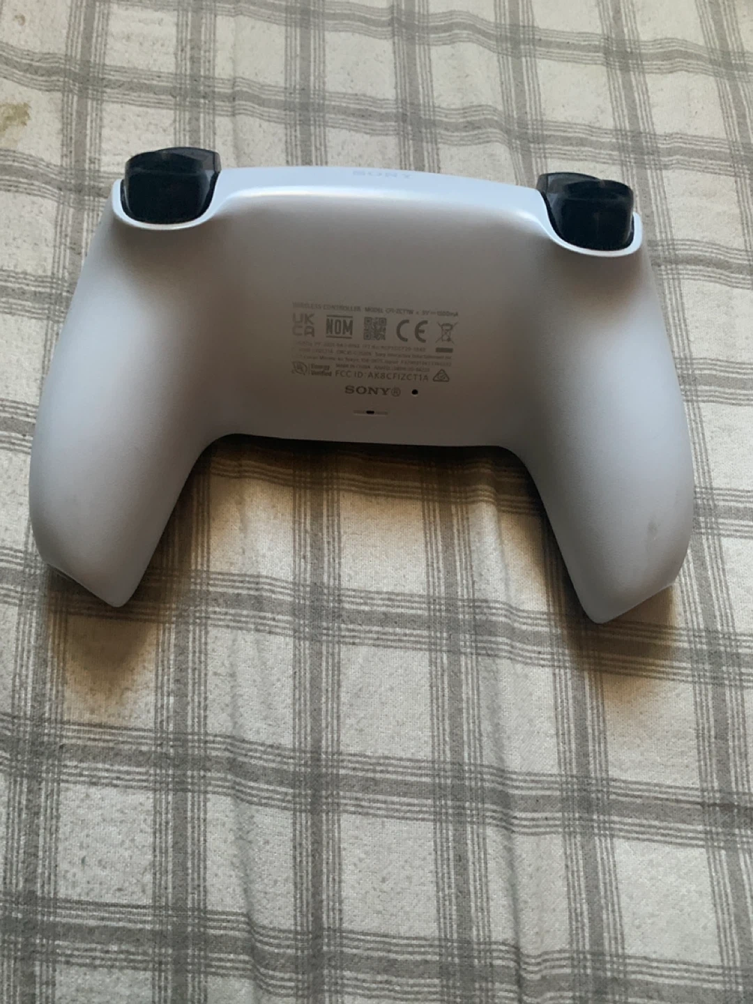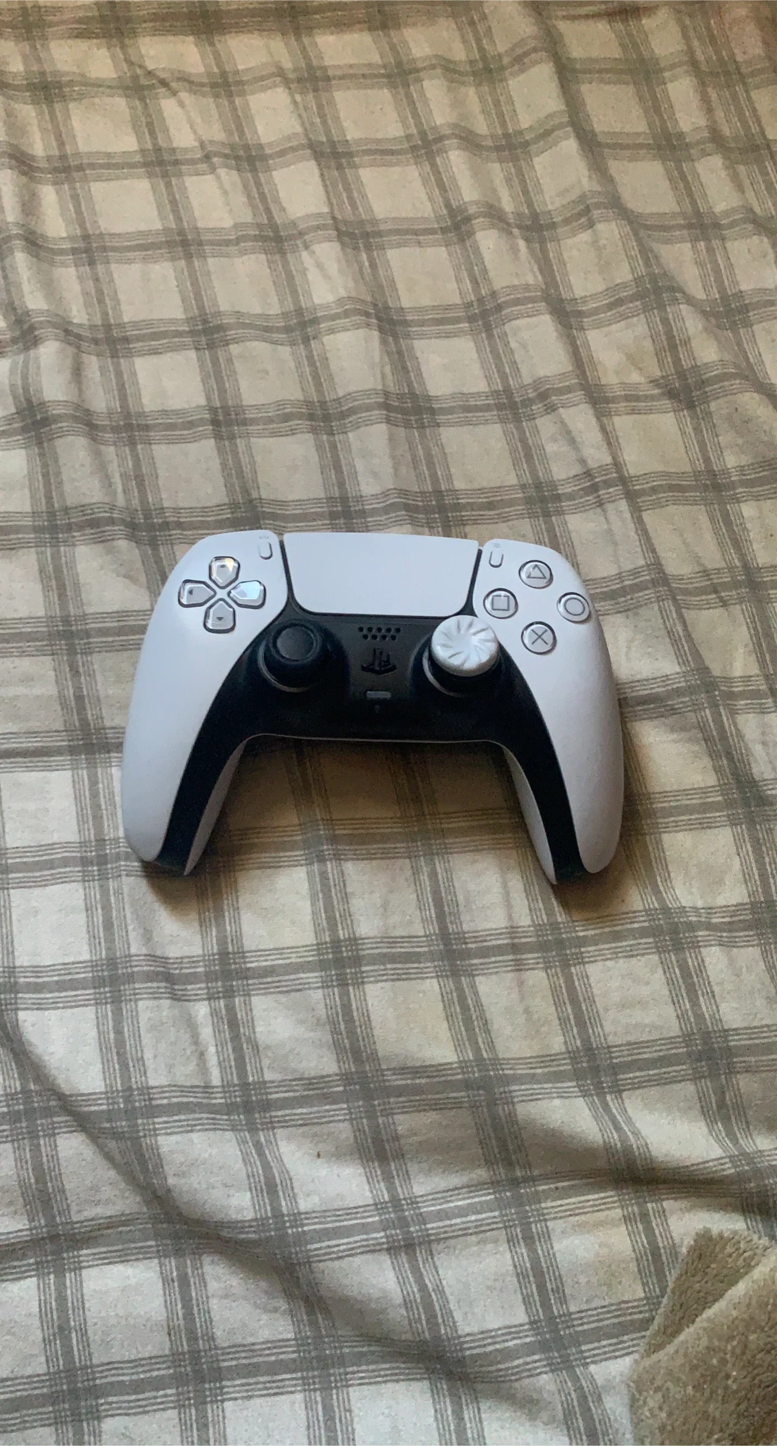 Selling a white Sony PlayStation 5 DualSense wireless controller. It's in good condition works perfectly fine there is a scuff mark on the back.