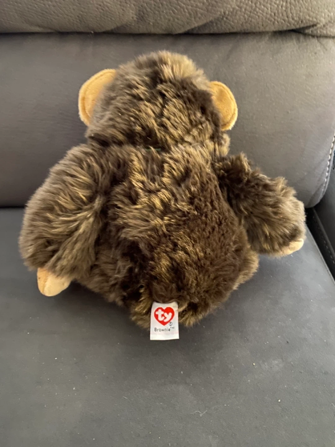This is a Ty Brownie monkey plush toy. It's made with soft brown fur and has large, expressive eyes. It's a cute addition to any stuffed animal collection!