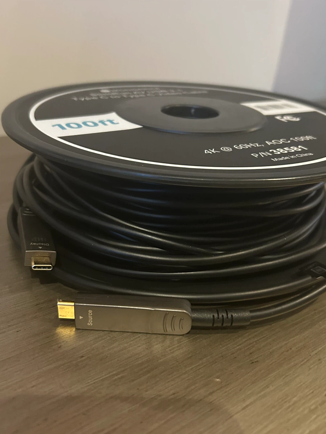 Brand New 100 Feet Monoprice SlimRun AV USB 3.1 Type-C to Type-C Video Cable 4K@60Hz. Fiber Optic AOC. Gold Plated Connectors.