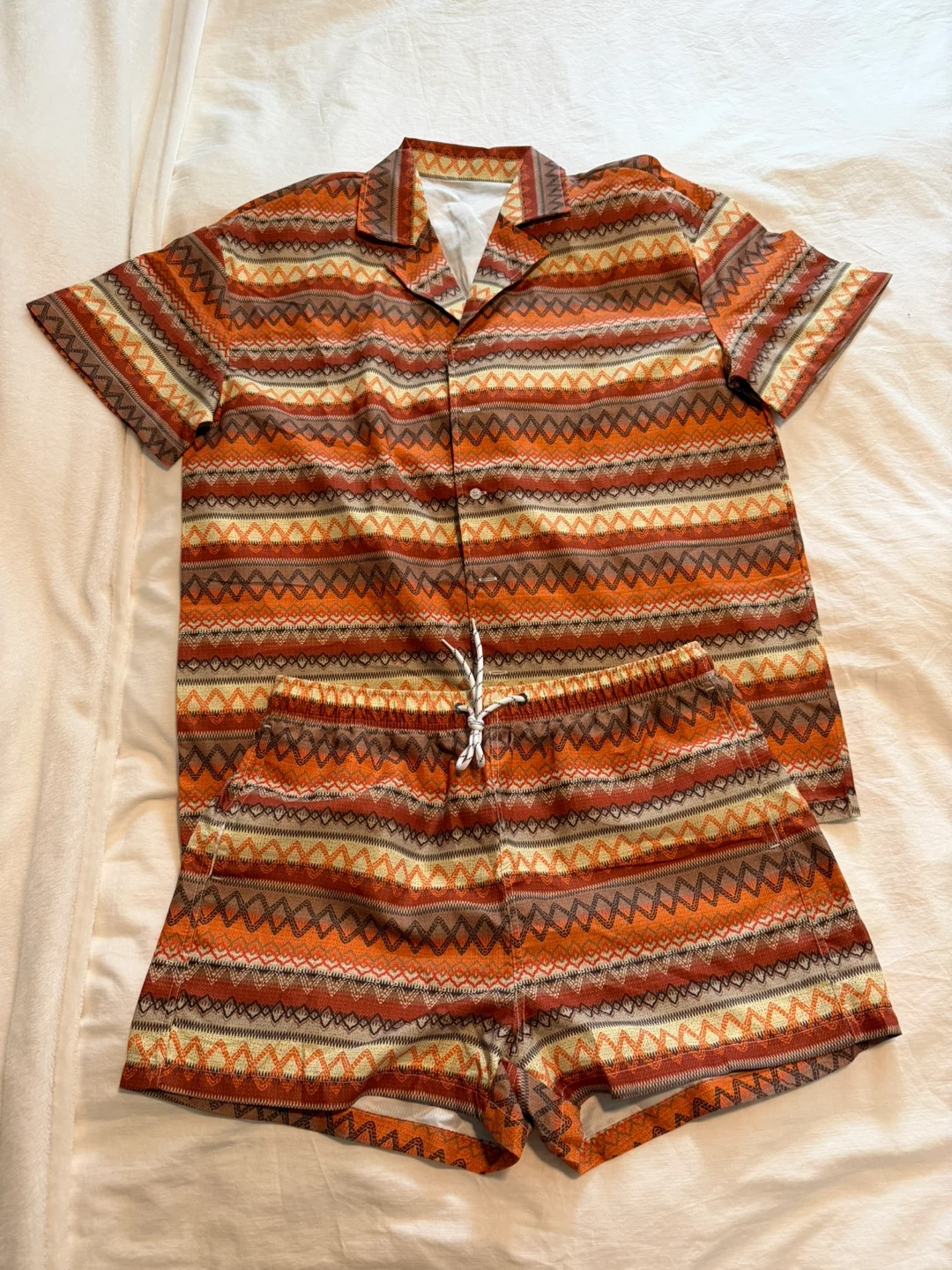 Manfinity Men's Vacation Wave Striped Shirt and Shorts Set