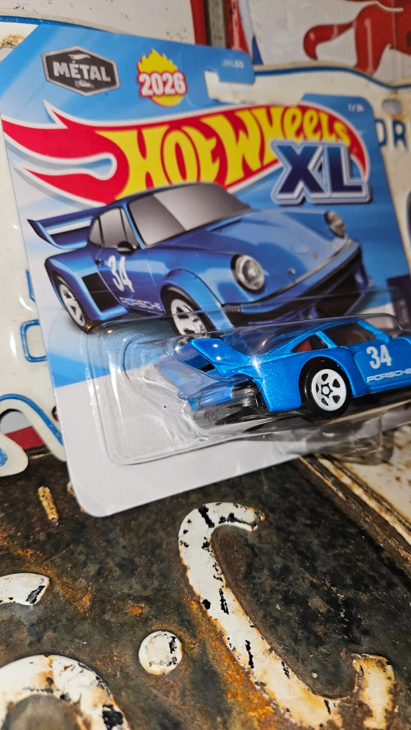 This is a Hot Wheels XL die-cast toy car. It's a blue Porsche 934.5 model. Recommended for ages 3 and up.