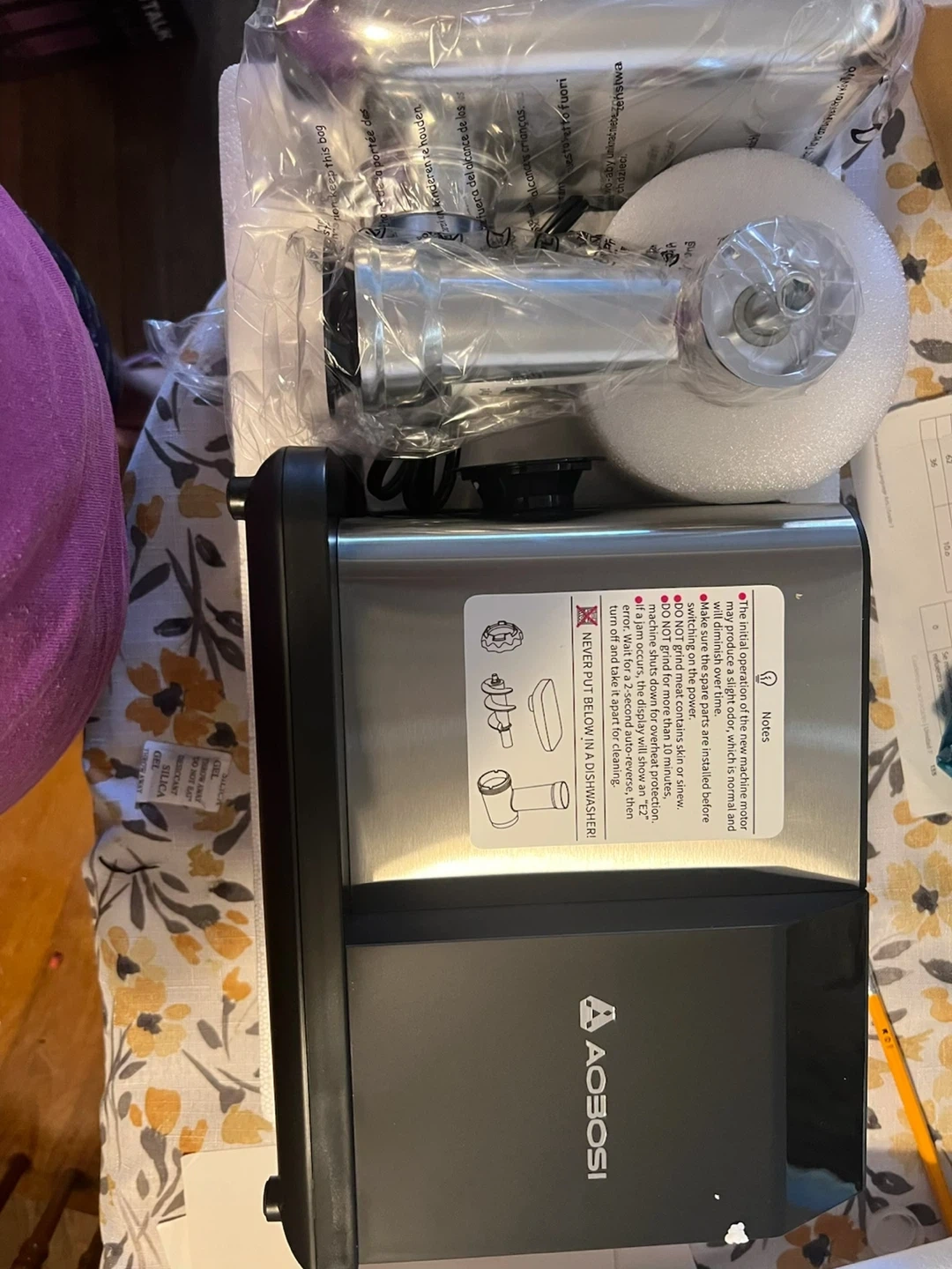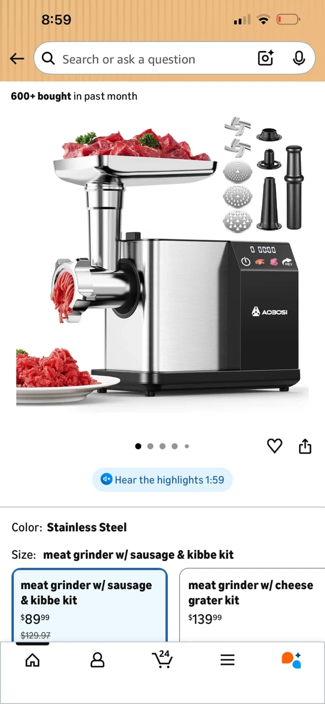 AOBOISI Meat Grinder w/ Sausage & Kibbe Kit Stainless Steel