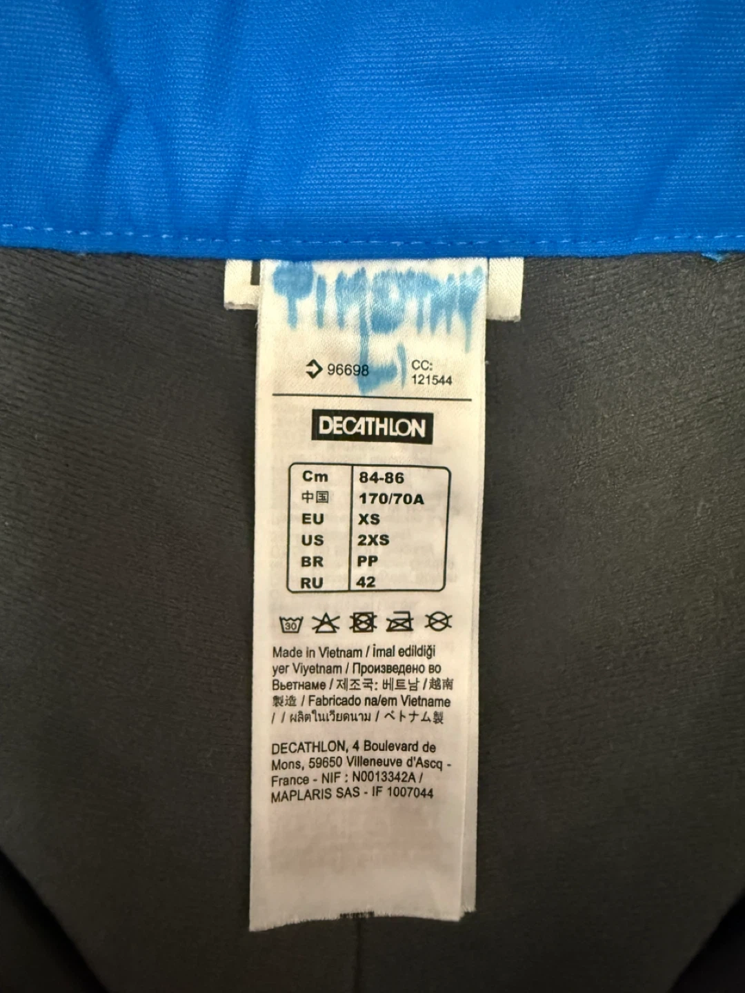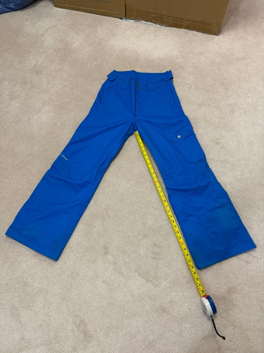 I have a pair of Decathlon snow pants for sale! They are a bright blue colour and appear to be a size 2XS The pants have a pocket on the leg. Great for skiing or snowboarding this winter!