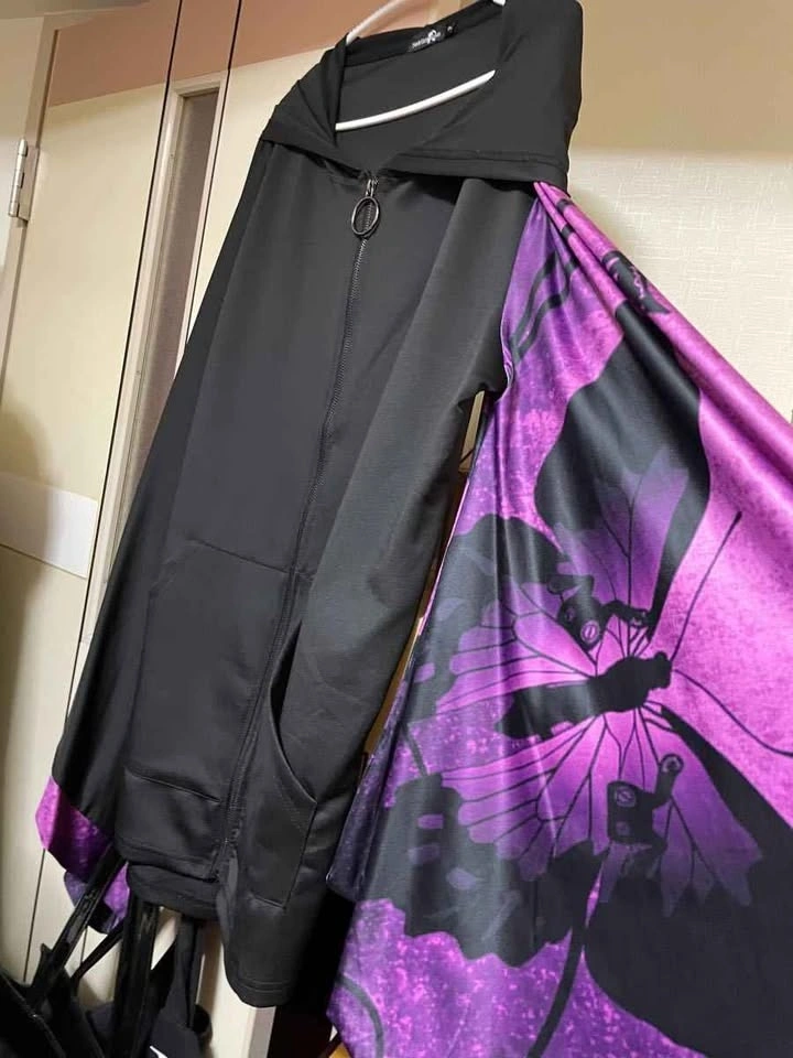 A unique statement piece with a deep purple butterfly design, perfect for fans of Japanese fashion or collectors.