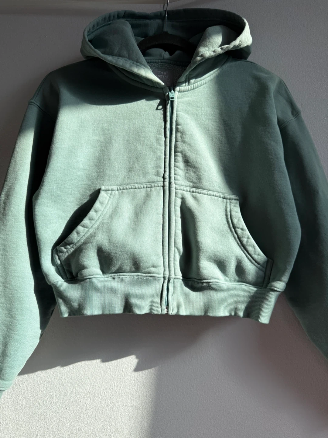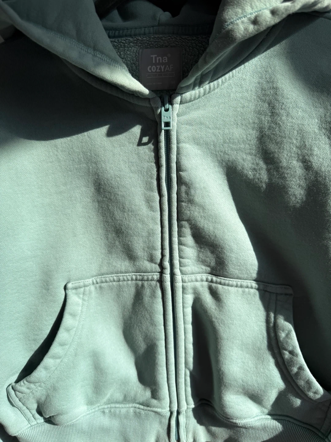 Selling a Tna CozyAF fleece zip-up hoodie in size 2XS! It's a lovely light green colour and in great condition. Perfect for layering or just lounging around in something comfy!