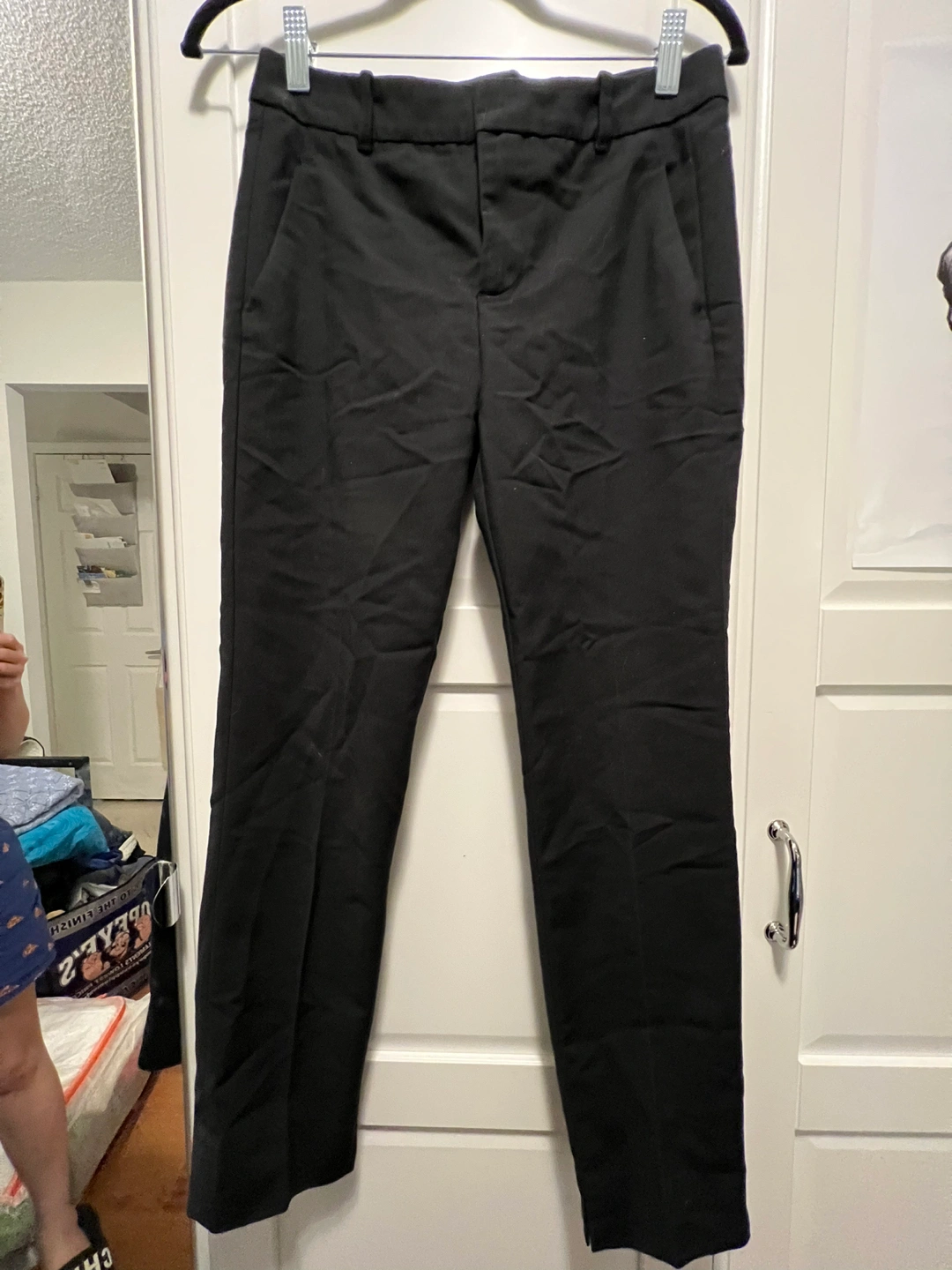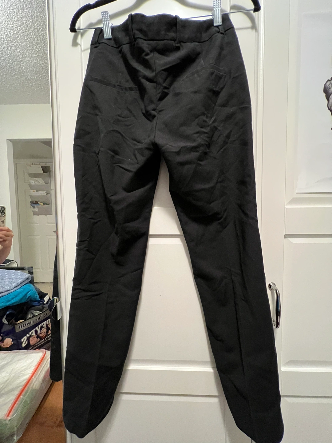 XS black dress pants with 2 side pockets, the butt pockets are fake