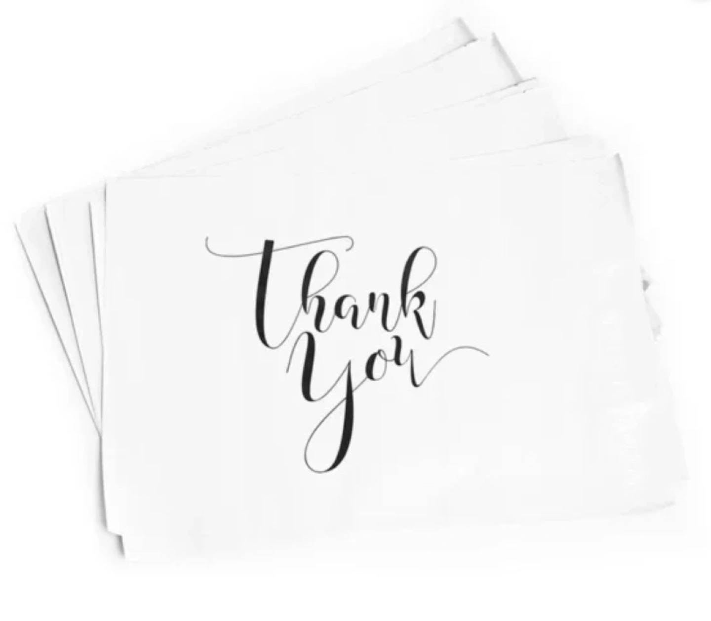 Non-padded polymailers (plastic shipping bags) in classy minimalistic Thank You print.