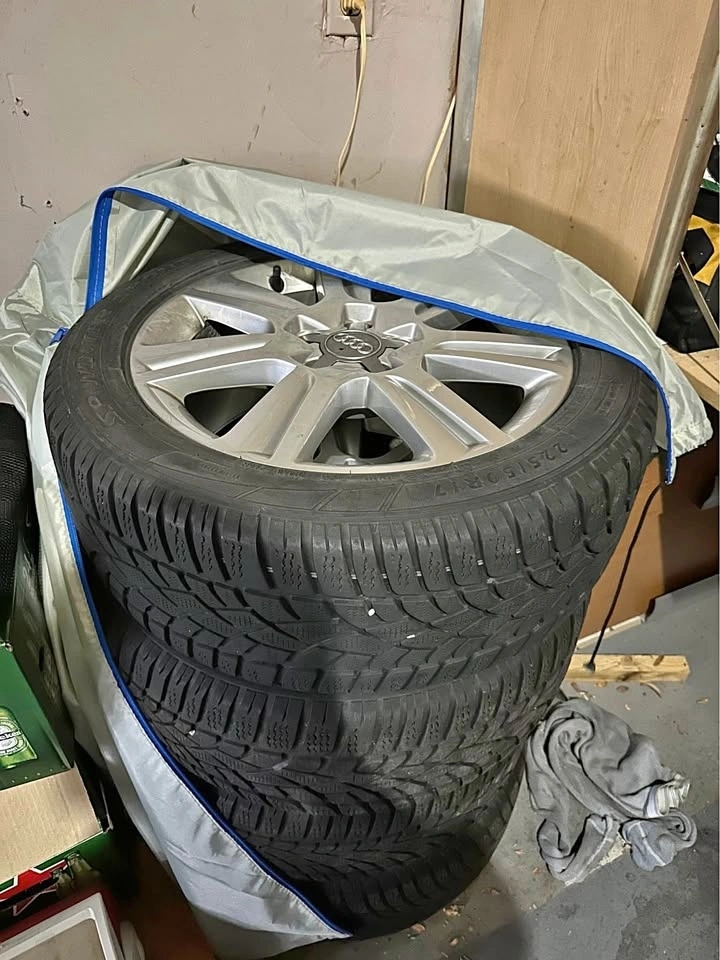 Great set of 4 Audi winter tires on rims. Size 225/50R17. Has good tread left, ready for winter driving.