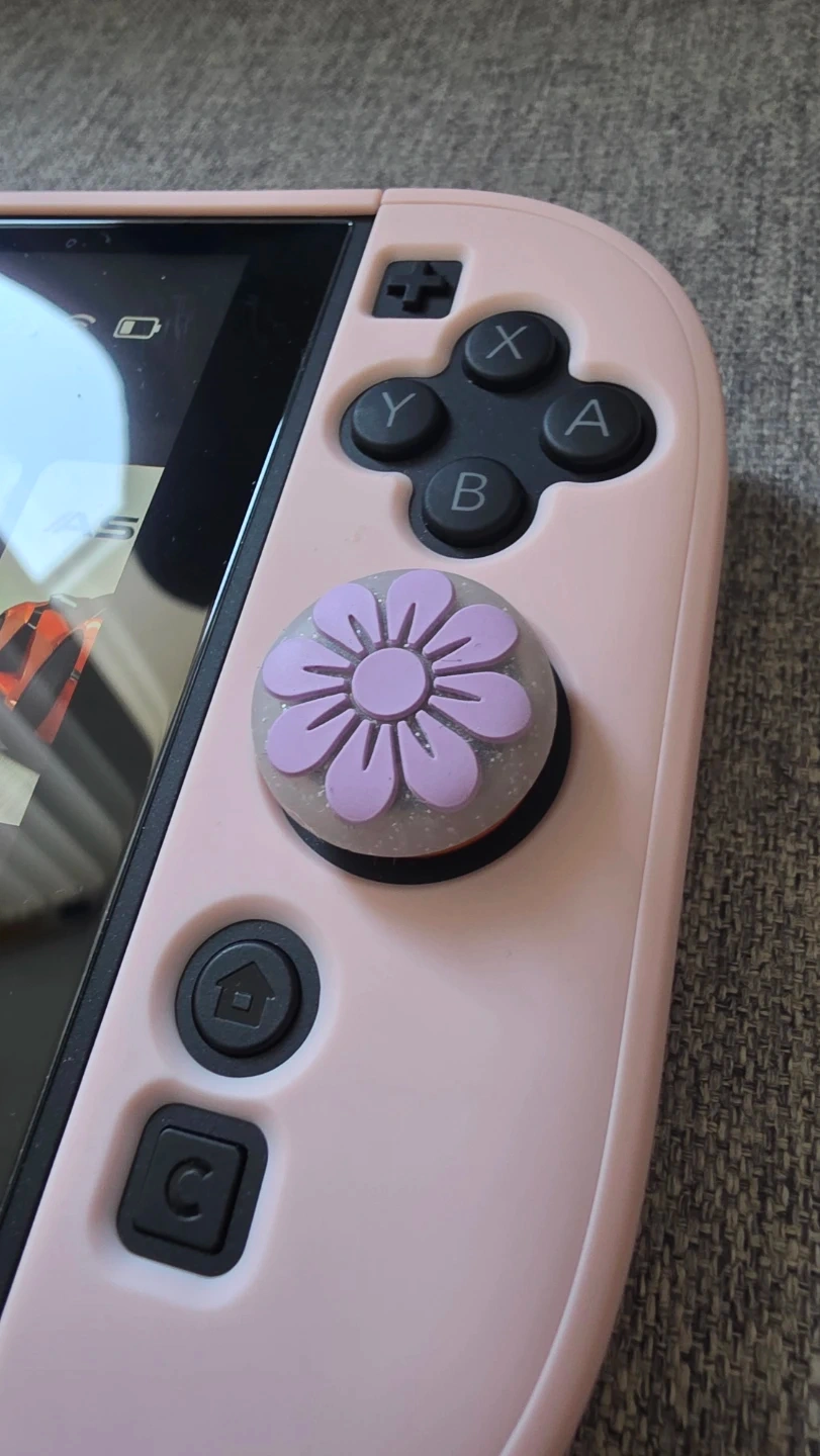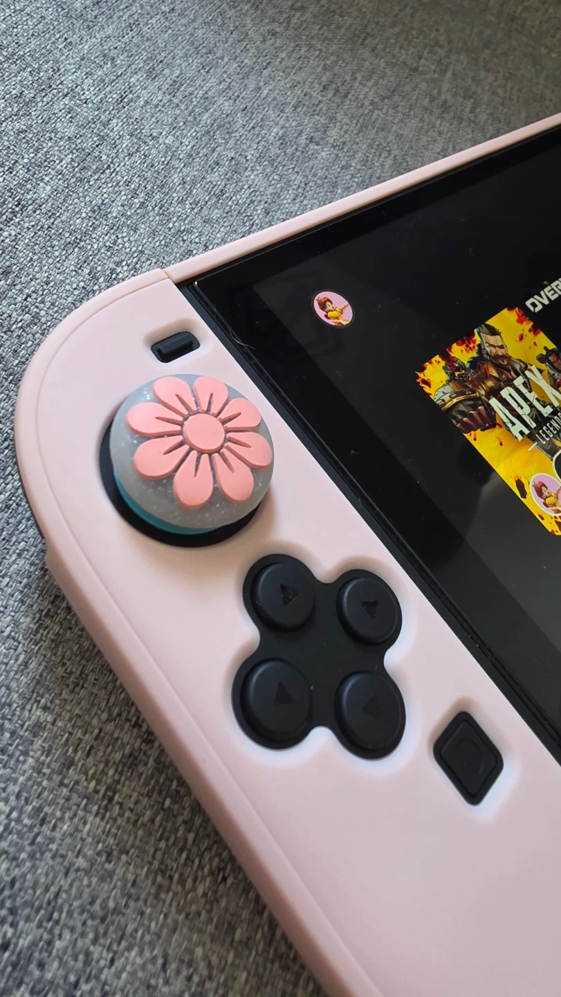 It also comes with two adorable flower-shaped thumb grips, one in pink and one in purple, for your joysticks.