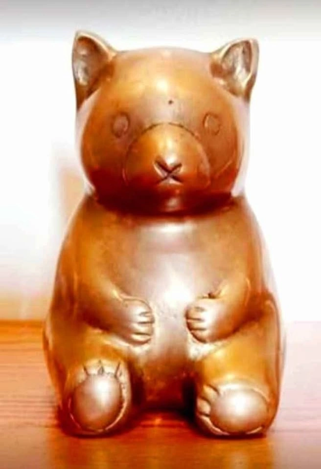 Mid Century, Rare, Collectible Brass Teddy Bear , Decorative Peggy Bank 1950s - Made in Korea. Very Good Condition with Original Sticker.