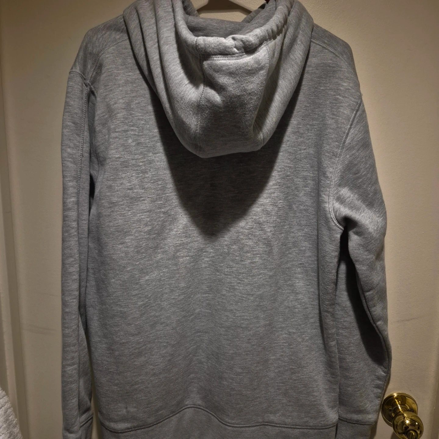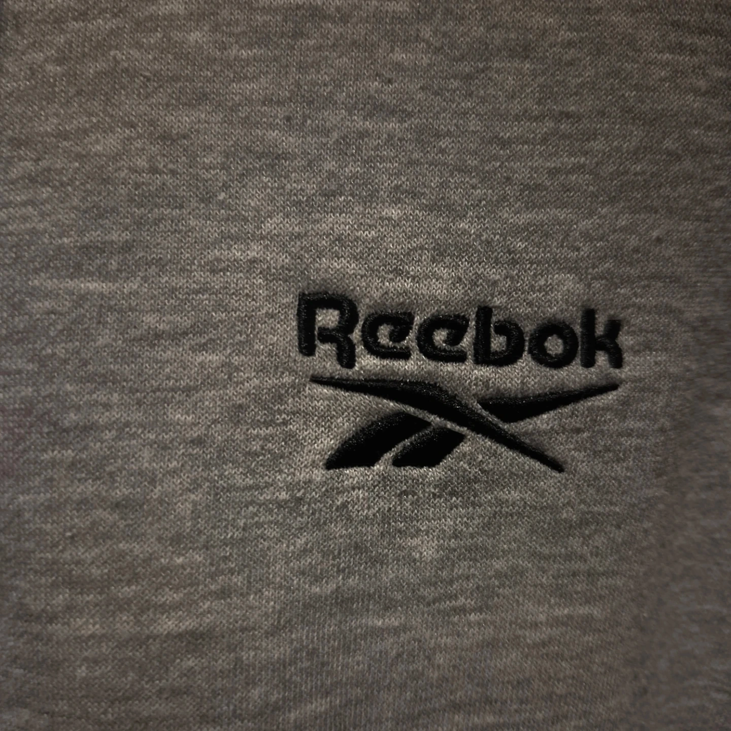 Reebok grey hoodie with a kangaroo pocket and a drawstring hood. It's a size L. Made with a soft cotton blend.