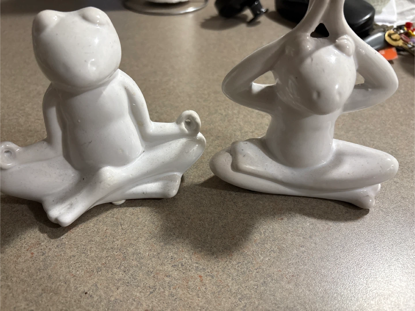 Add a touch of zen to your space with these adorable yoga frog figurines! They're perfect for adding a calming vibe to any room. Both are in great shape and ready to find a new home