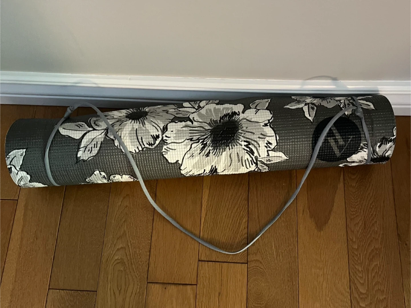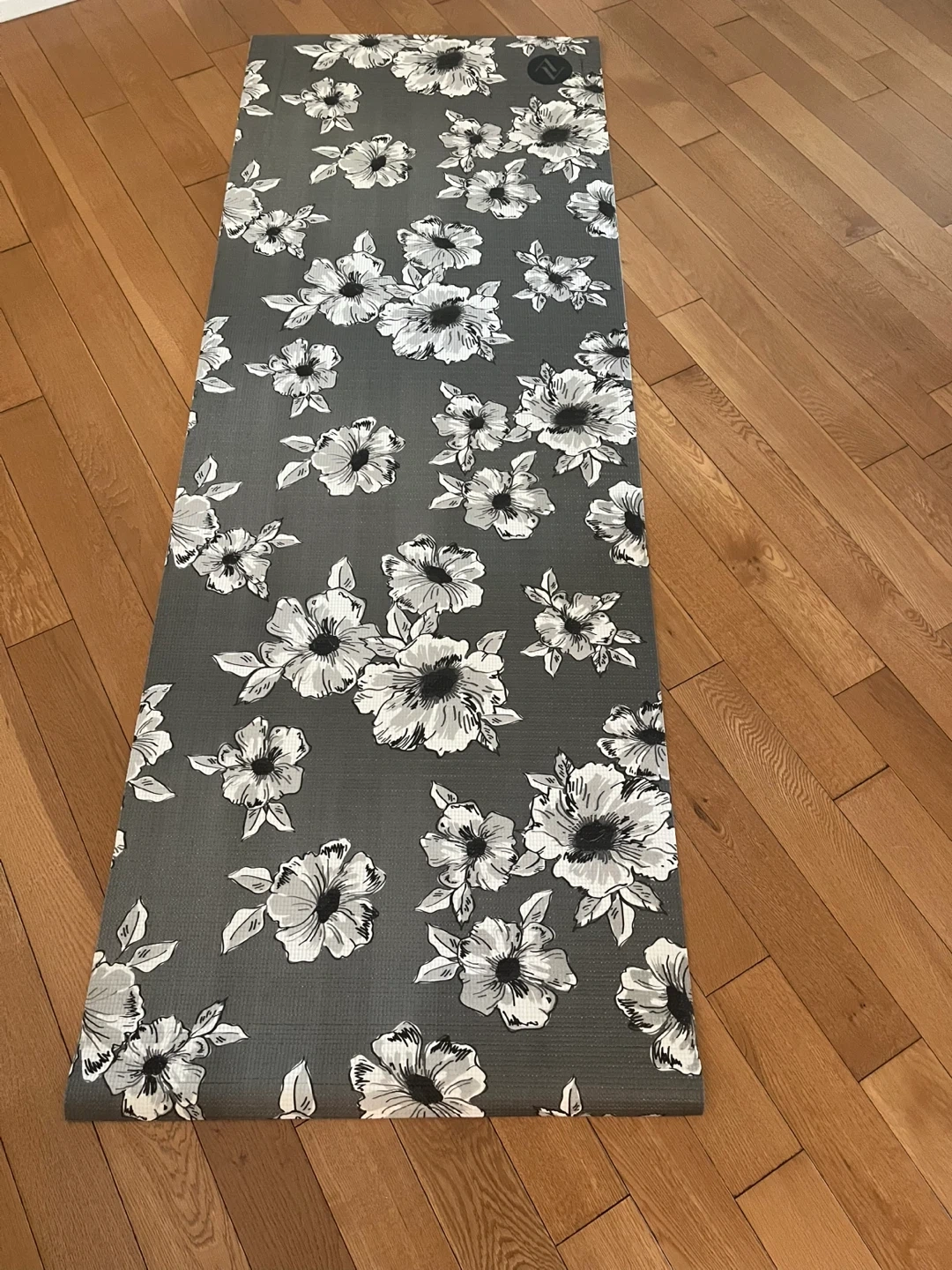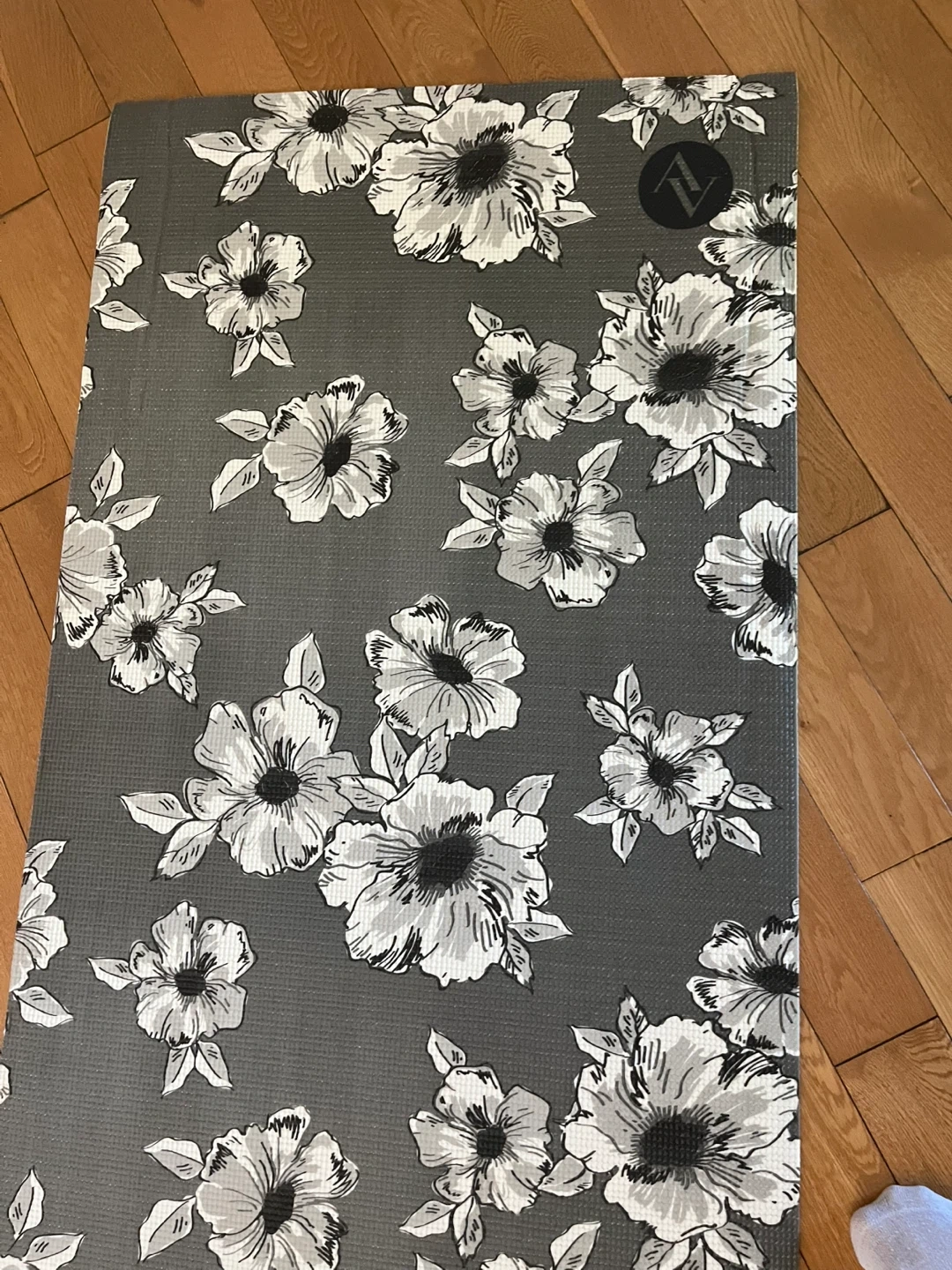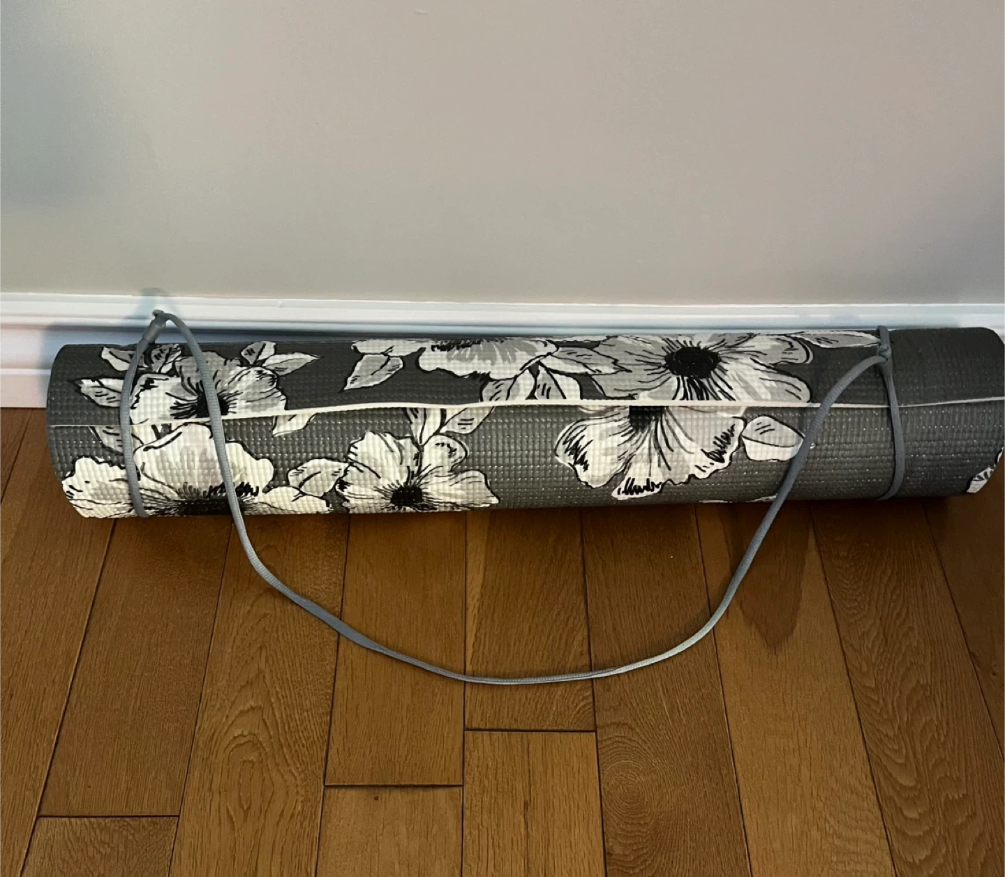 Selling a yoga mat with a pretty floral pattern! Only used once, light weight. It's in great shape and ready for your next yoga session or workout. Comes with a strap for easy carrying