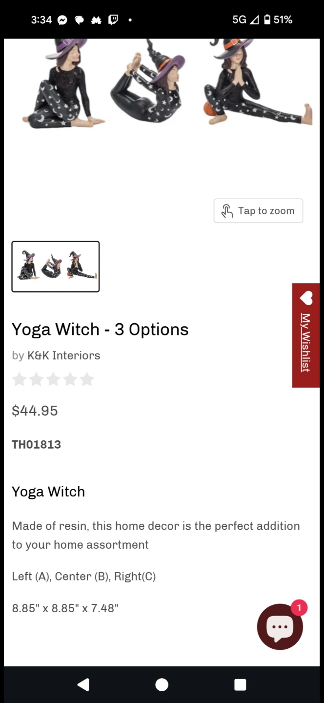 107Brand New Yoga Witch Made of resin, this home decor is the perfect addition