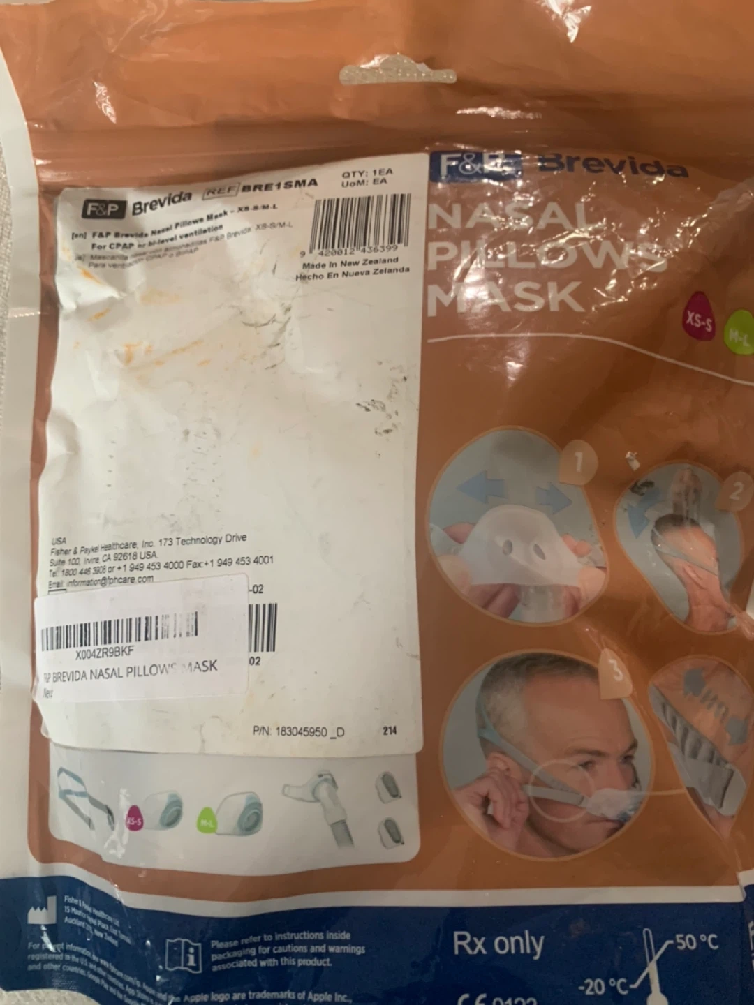 This is a Fisher & Paykel Brevida Nasal Pillow Mask. It's designed for sleep apnea therapy. Features include a soft silicone cushion and adjustable headgear.