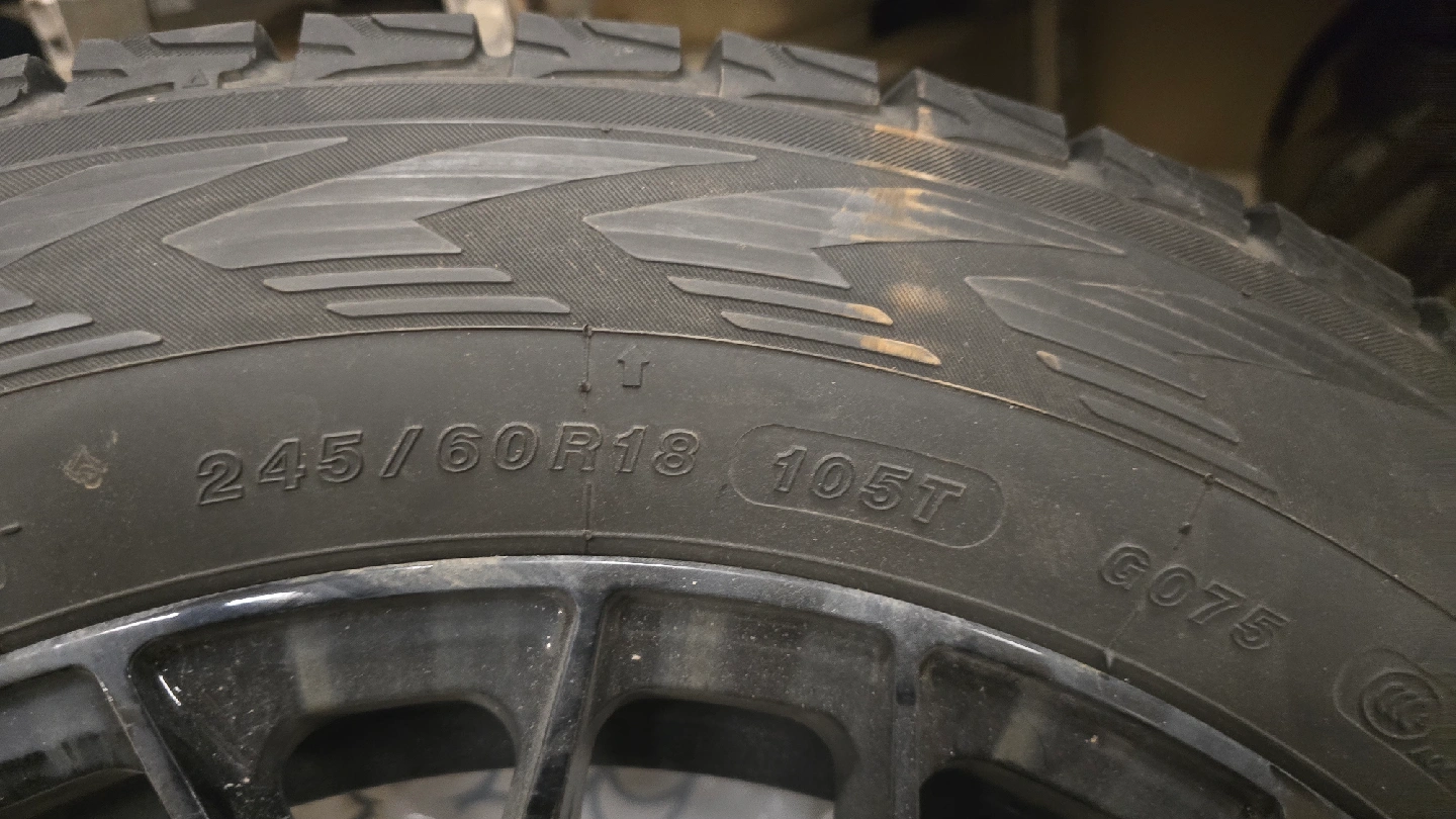 Selling a Yokohama Studless tire, size 245/60R18. It's marked 105T with alloy wheels no damage used one season only