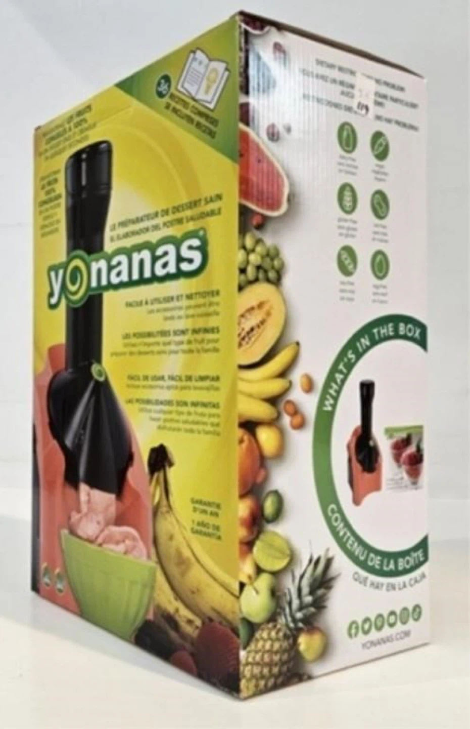 75Yonanas transforms frozen fruit into a thick and creamy dessert in seconds! It's easy to use and clean, and the possibilities are endless. The box includes 36 recipes to get you started. It's the healthy dessert maker the whole family will enjoy