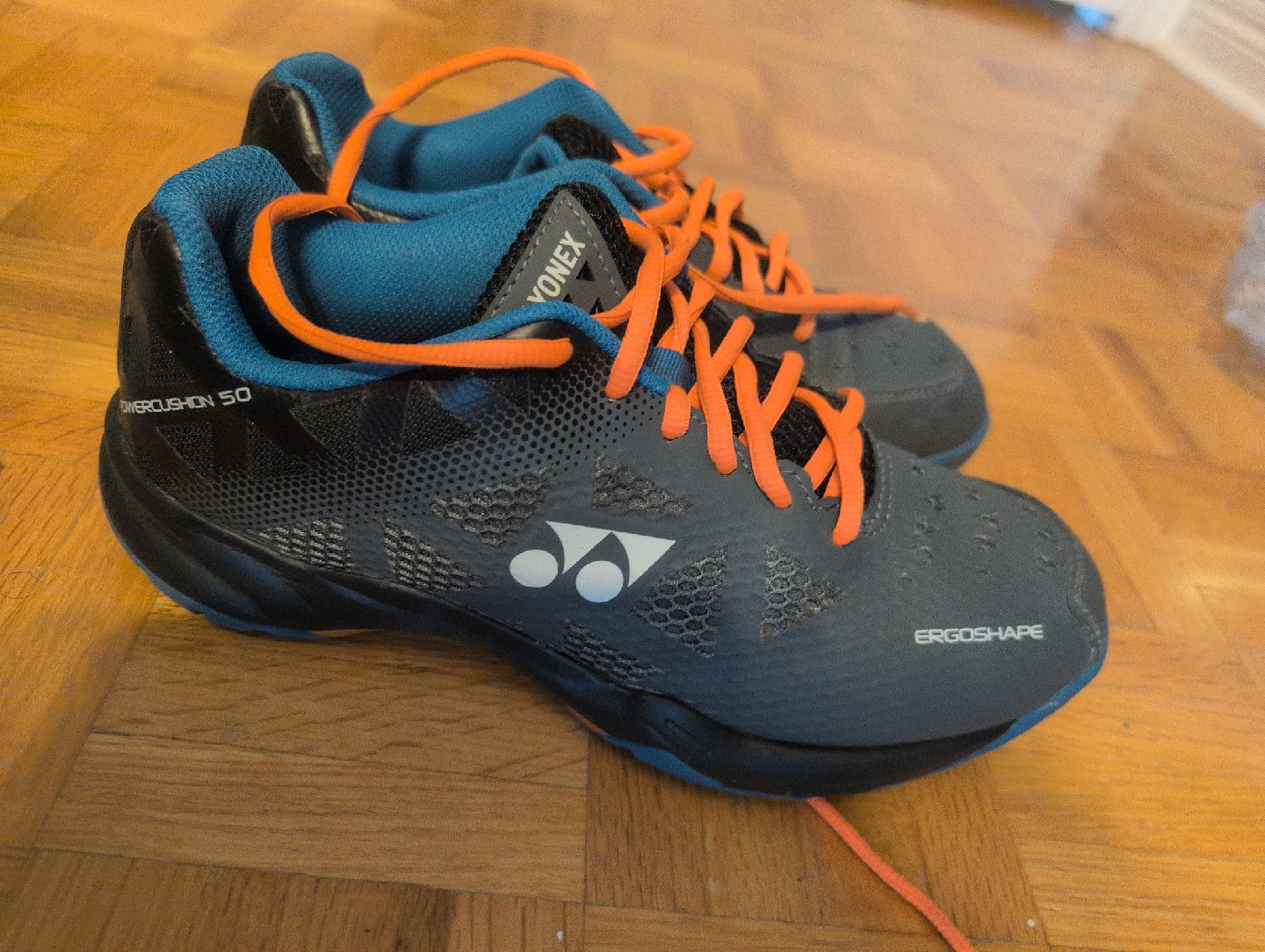 80Selling a pair of Yonex Power Cushion 50 badminton shoes. They're in good condition and ready for your next game! The shoes feature Ergoshape technology for a comfortable fit and the Power Cushion for shock absorption. Size UK 8, 26.5 cms