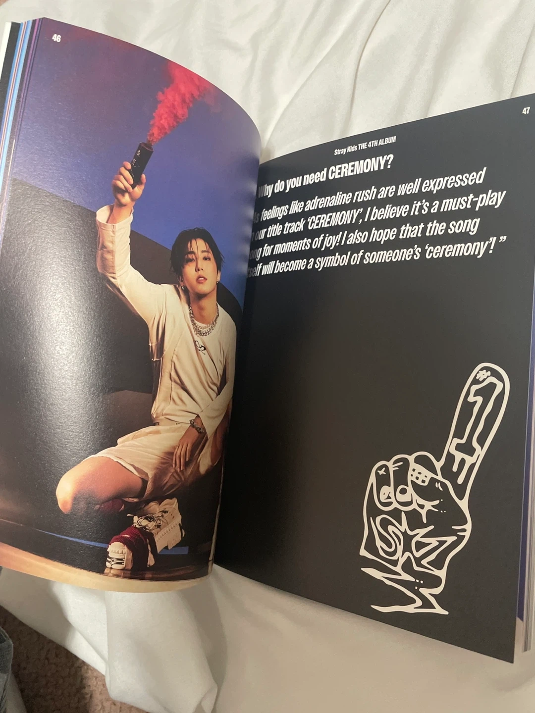 Stray kids 100 page KARMA photo book and CD! The cd and photobook are in perfect condition. CD Includes the songs: Ceremony, Bleep, Creed, Mess, In my head, Halftime, Phoenix, Ghost, 0801, Ceremony (festival version), Ceremony (English version) also comes with small posters of every member!