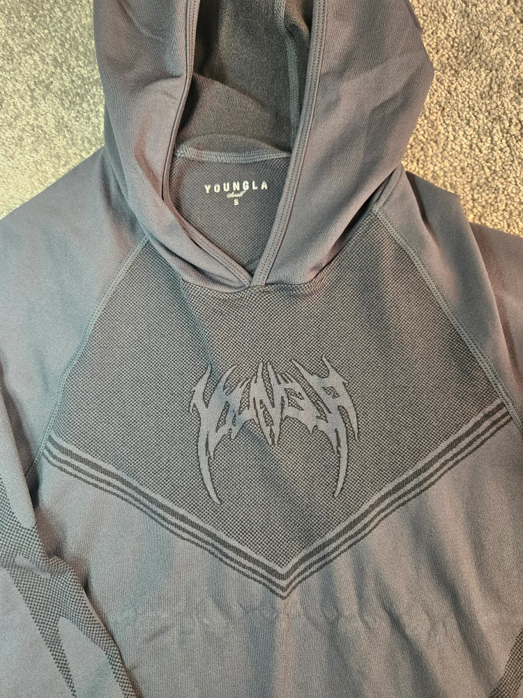 Looking to sell a YOUNGLA Warrior Compression Hoodie in size small. It's in great condition and features a unique design. ordered small size by mistake, tried to cancell it but it was already shipped. never washed before. never worn it before and its brand new