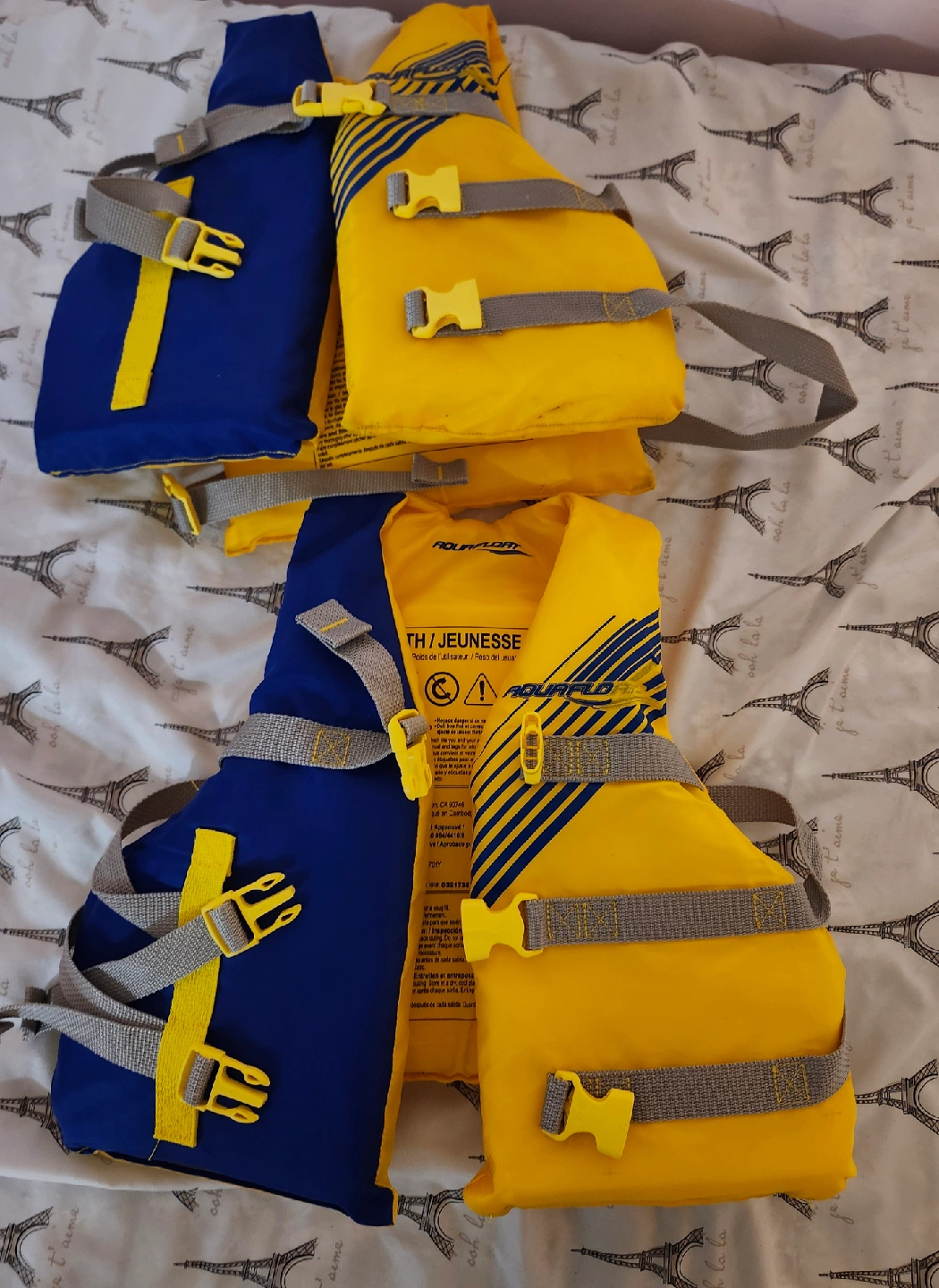 Keep your little ones safe with these youth life jackets from Aqua-Leisure! They're designed for users weighing over 25-40 kg (55-88 lbs). These jackets are in great condition and ready for your next water adventure!