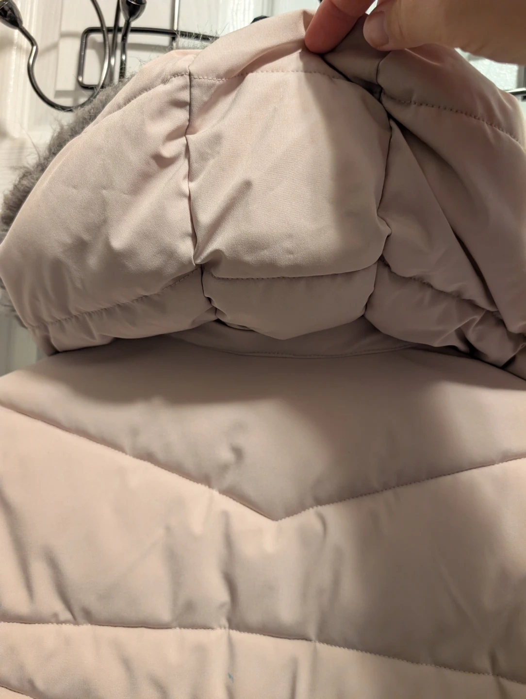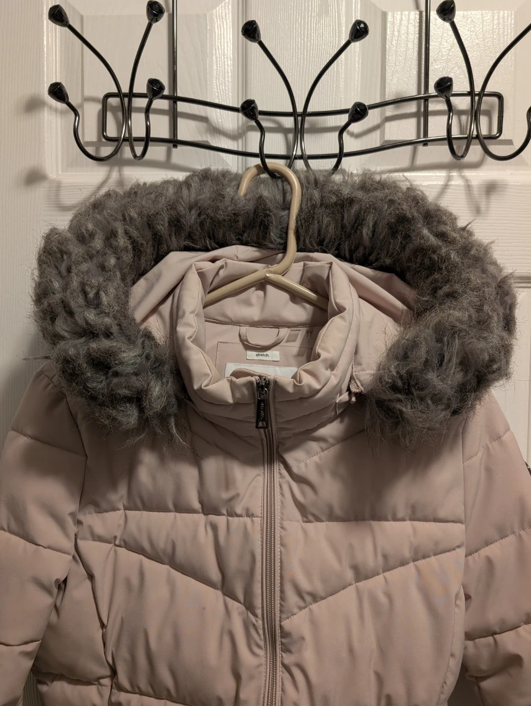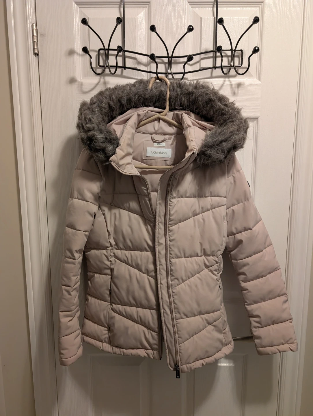 112Here's a Calvin Klein puffer jacket in size medium! It's a lovely light pink colour and has a faux fur trim on the hood. Pick up Woodbine and Rodick Rd in Markham