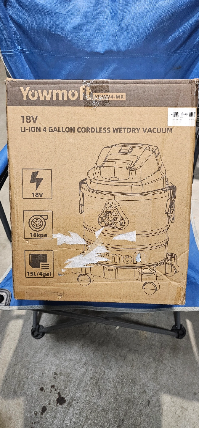 60Selling a Yowmoft 18V Li-Ion cordless wet/dry vacuum. It has a 4-gallon capacity and is perfect for both wet and dry applications. It can also be used as a blower for heavy duty tasks. The 2025 upgraded cordless design offers cordless, limitless cleaning!