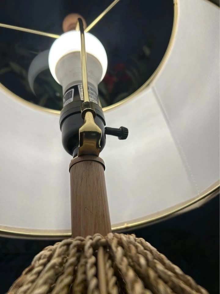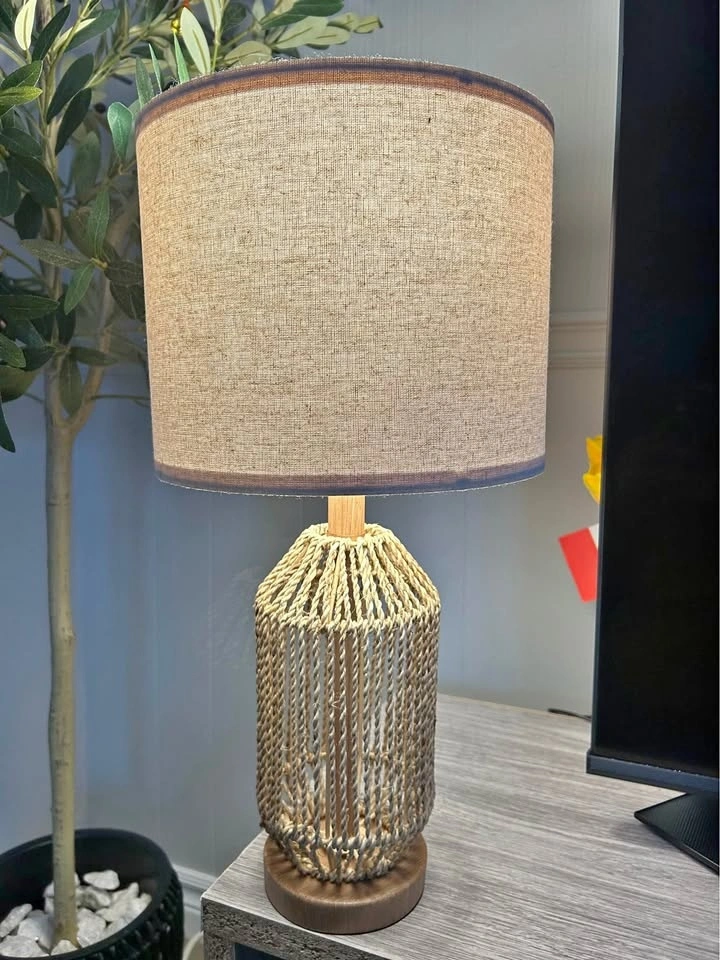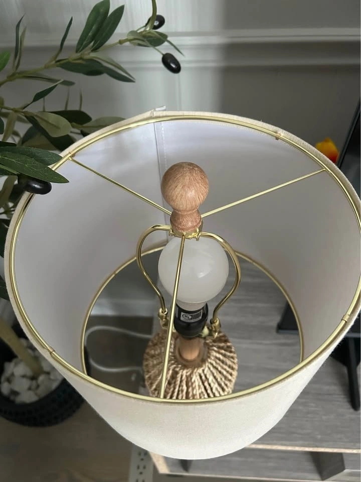 Brand-new open-box table lamp with golden rings. Height: around 55cm. Shade’s diameter: 25.3cm, with linen pattern and neutral color. Tested and it is working super fine. It does NOT include a bulb. Cash only. Please check out my other listings.