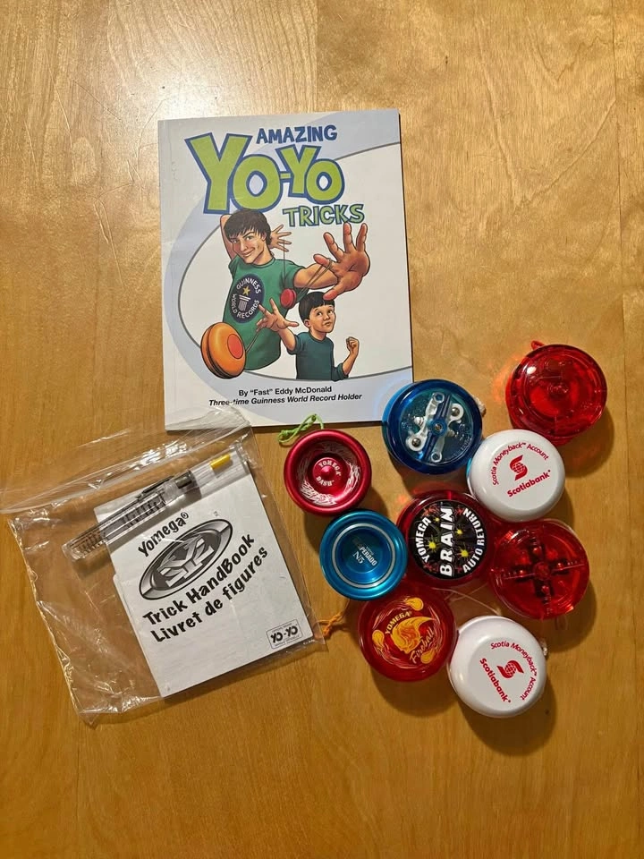 5Collection of yoyos that comes with the book of tricks & a lube tool for the yoyo. Includes the desperado & the yomega dash yoyos. In excellent condition. Richmond Hill or Yonge & Finch area