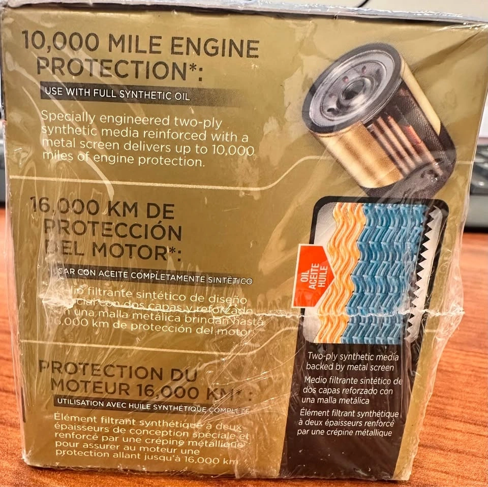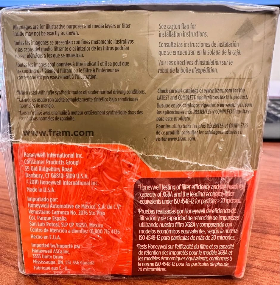 For sale is a brand new, factory-sealed FRAM Xtended Guard (XG3593A) Oil Filter. This is a premium filter specifically engineered for use with full synthetic motor oil. Key Features: Performance: Delivers up to 10,000 miles (16,000 km) of engine protection. Advanced Media: Two-ply synthetic media reinforced with a metal screen for superior dirt-trapping and durability. Efficiency: 97% dirt-trapping efficiency. Ease of Use: Features the SureGRIP textured finish for easy installation and removal. Anti-Drainback Valve: Includes a silicone valve to protect the engine during cold starts. Condition: New in original box, still in factory plastic wrap. Specifications: Brand: FRAM, Part Number: XG3593A, UPC: 009100026354. Compatibility: Commonly fits various Honda, Acura, Nissan, Mazda, and Mitsubishi vehicles (please verify fitment for your specific year/make/model via the manufacturer’s website).