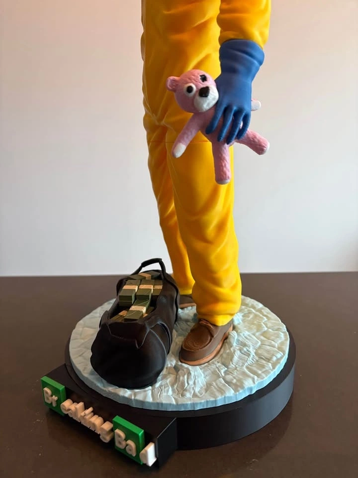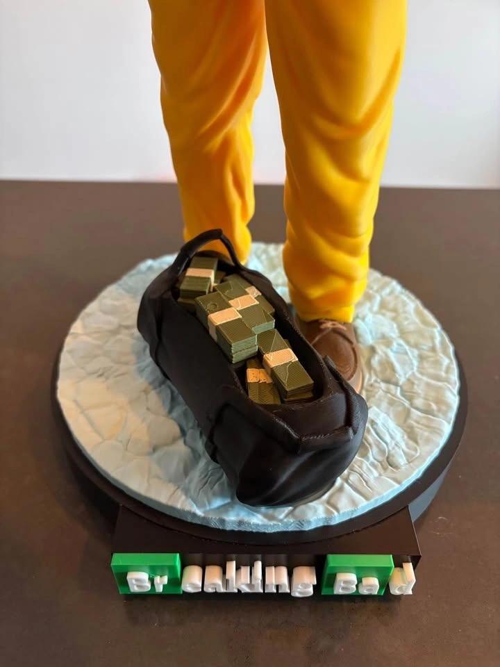 This premium Walter White figure is a large, high-detail 3D printed collectible produced on a Bambu Lab printer using 12 colors through AMS, delivering exceptional accuracy, color separation and sharp details. Perfect for Breaking Bad fans, collectors, display shelves, desks, studios or themed décor setups.
