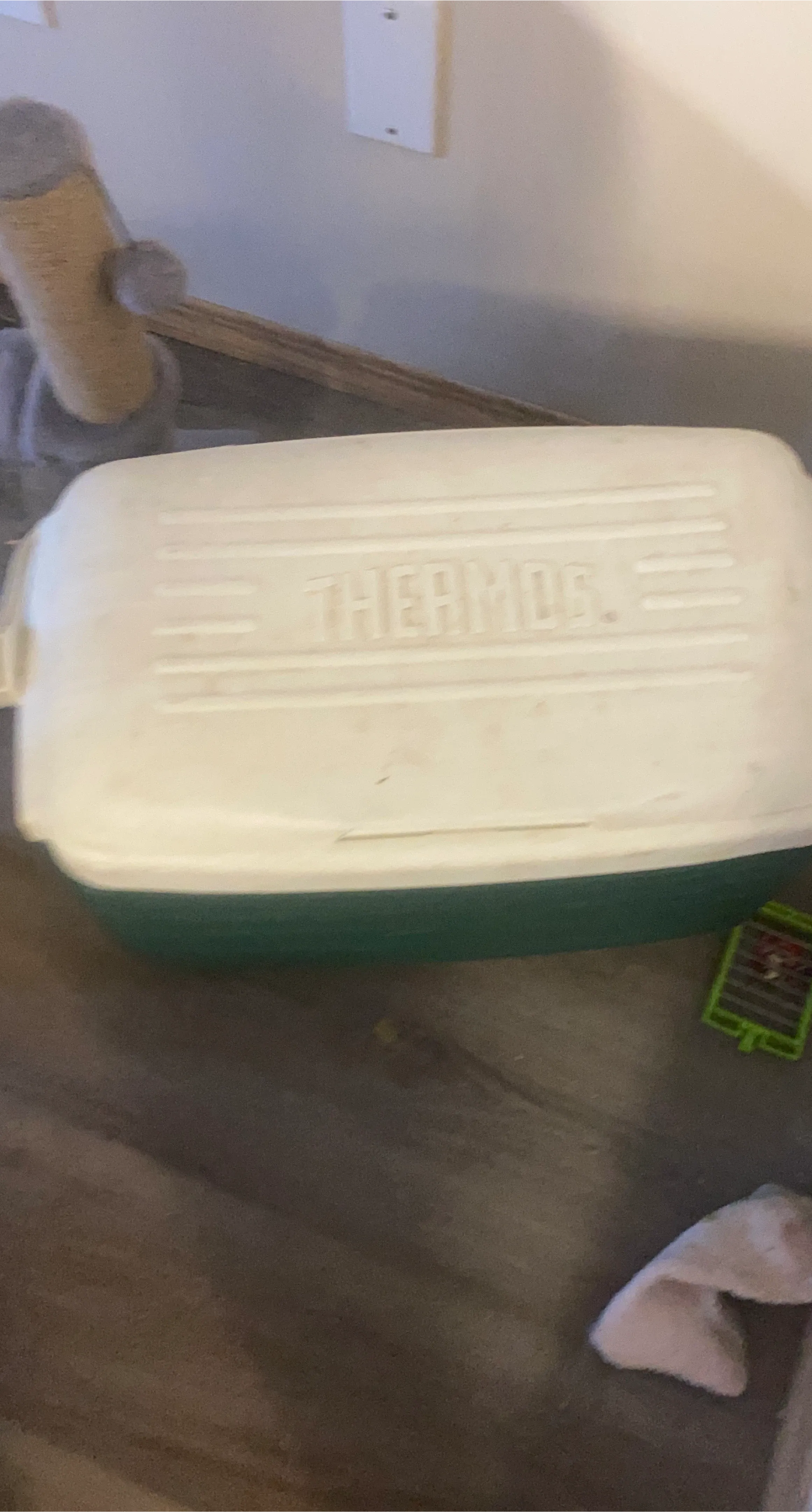 Moving out sale need gone asap!! This is a white and green Thermos cooler. It's a sturdy plastic cooler perfect for picnics or camping trips.