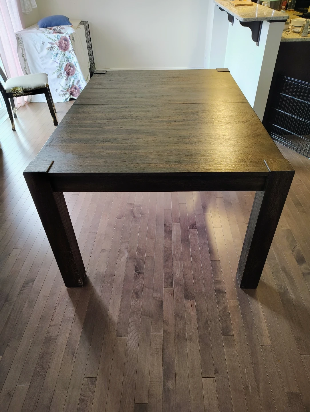Selling a solid dark wood dining table. It's in great condition and ready for a new home!