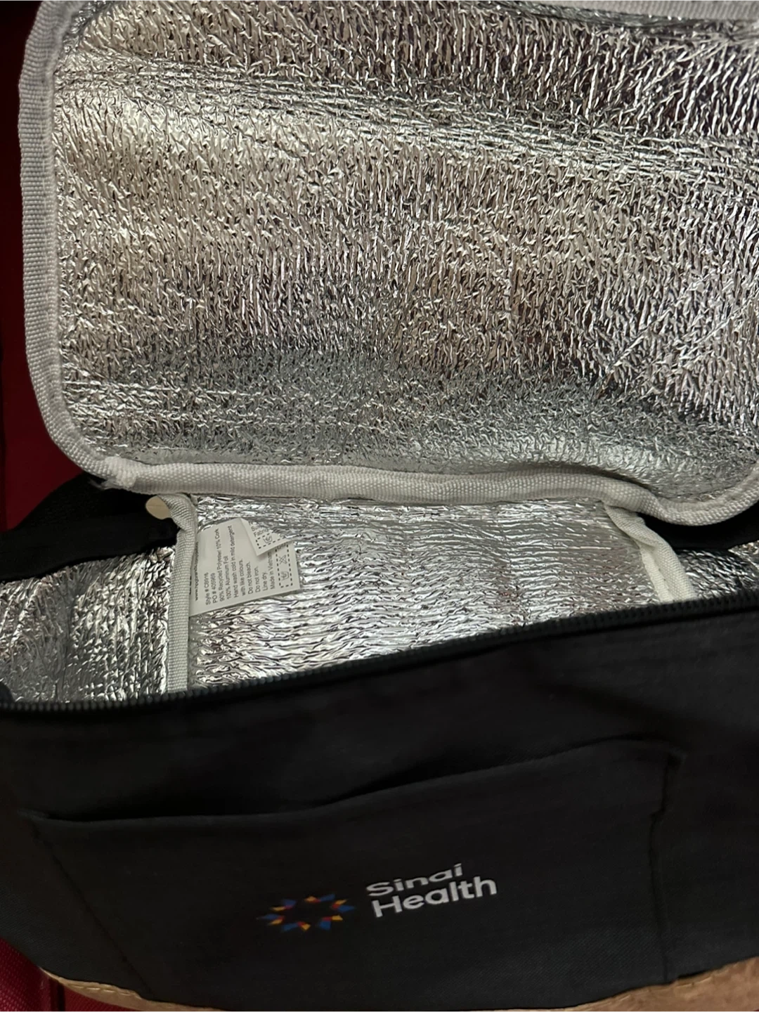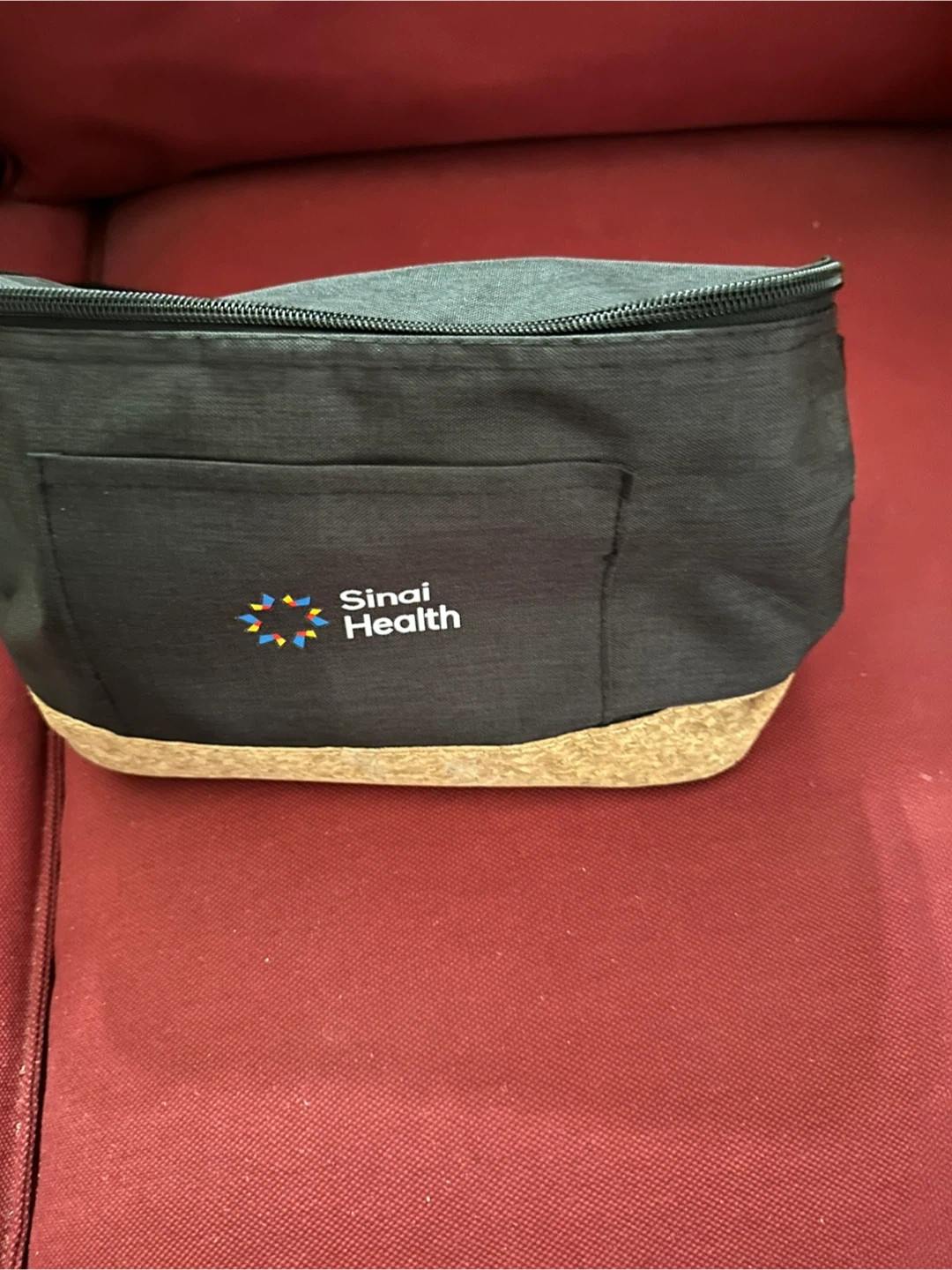 Black insulated lunch bag with a cork bottom accent. It's perfect for keeping your food cool on the go. Interior lining helps maintain temperature. Zipper closure for secure storage.