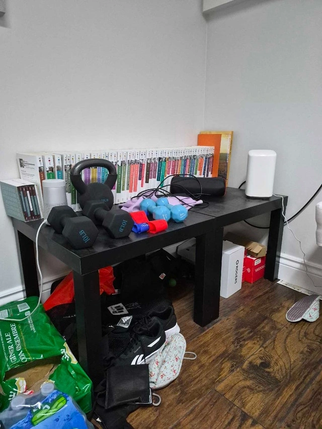 This is a black IKEA Lack side table, perfect for small spaces. It's sturdy and simple, ideal as a coffee table or nightstand. It is in used condition, so please see the photos for details. Dimensions: 55x55 cm, Height: 45 cm. Material: Wood/Particleboard. Cash accepted.