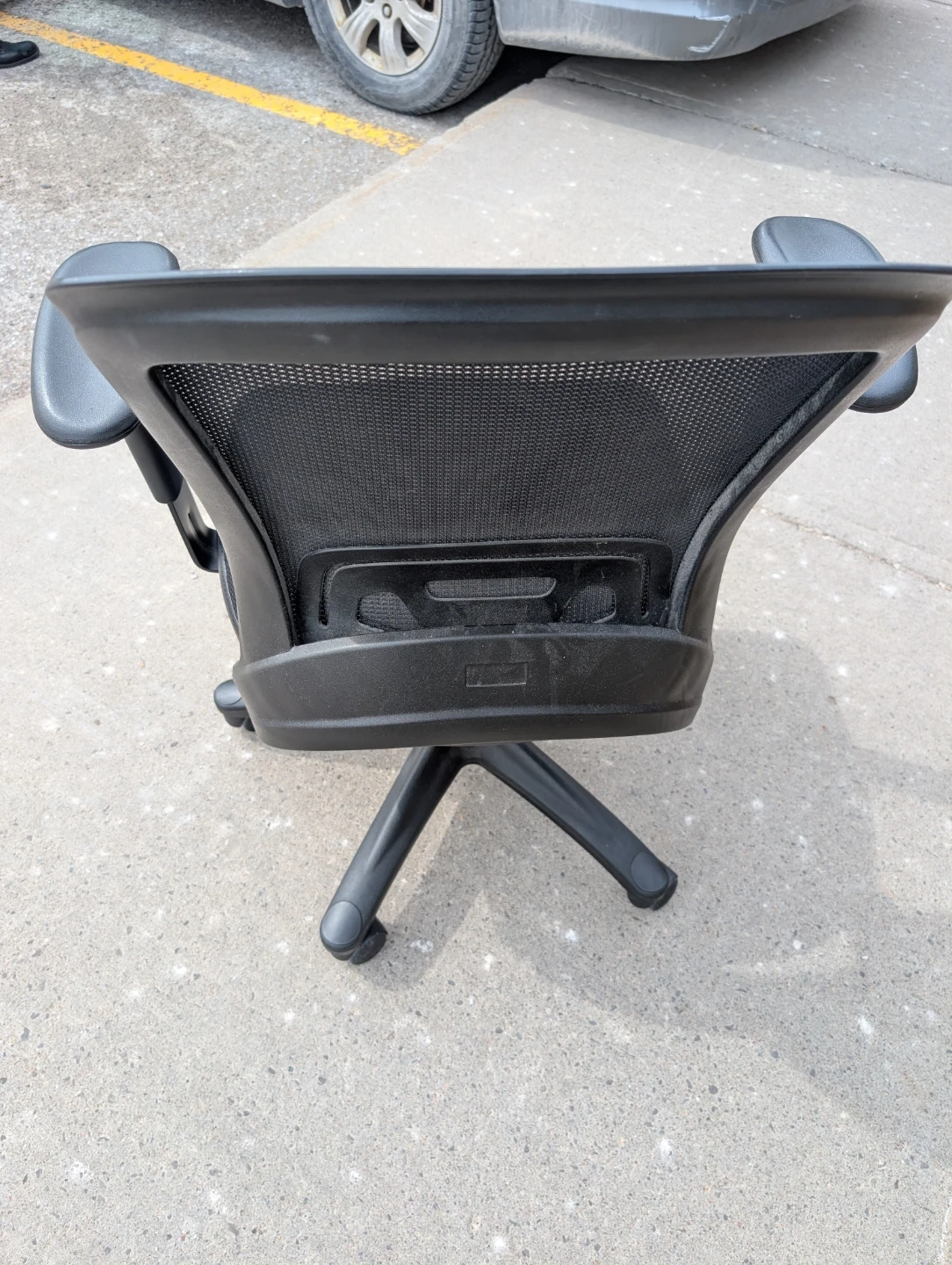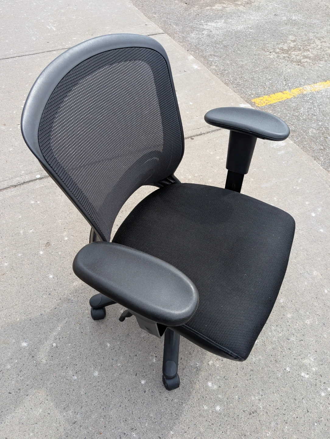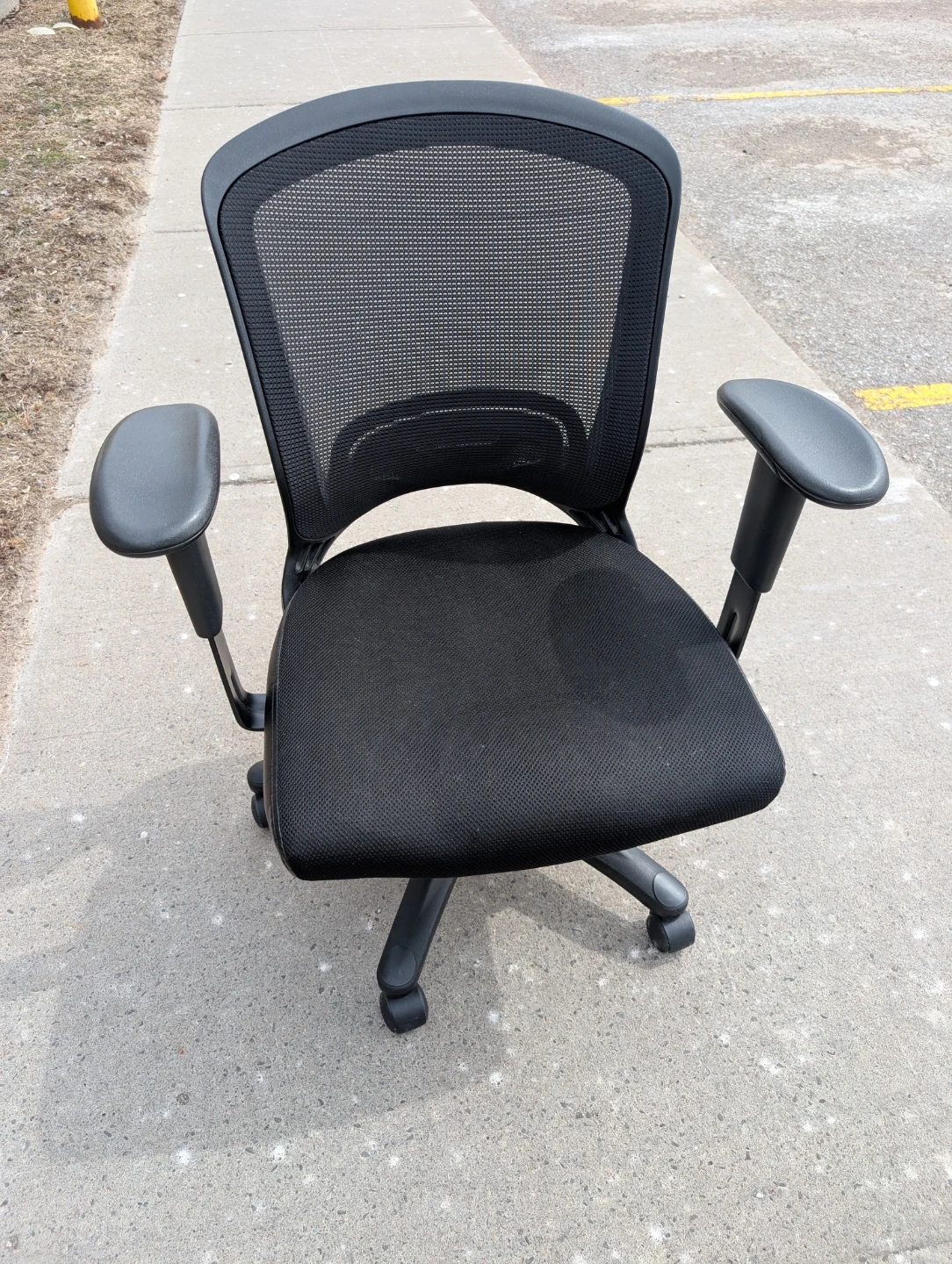 This black mesh office chair offers breathable comfort and adjustable armrests. It features a sturdy base with five casters for easy mobility. Ideal for your home office or workspace.