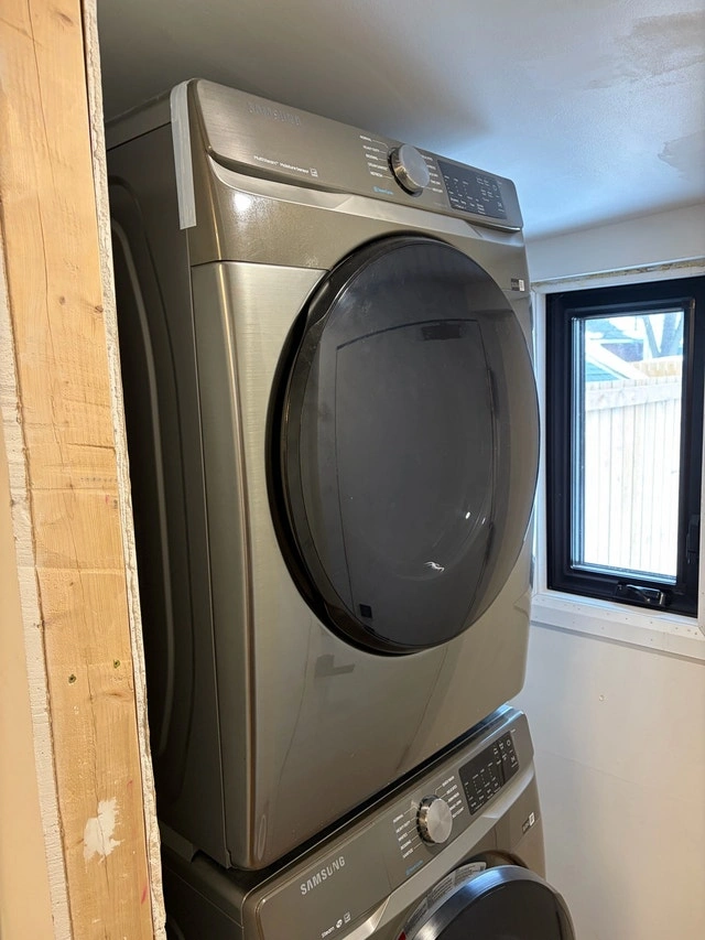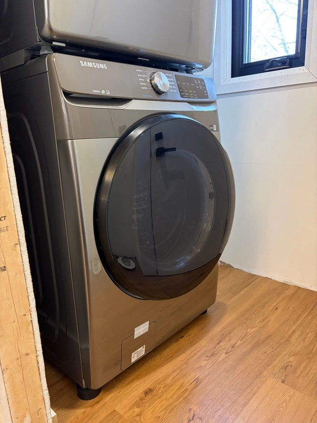 Selling our Samsung front-load washer (WF45R6100AP) and electric dryer (DVE45T6100P) set in stainless steel. Only 2 years old, excellent condition, works perfectly — no issues. 4.5 cu ft washer / 7.5 cu ft electric dryer. Stainless steel finish. Includes stacking kit and connection hoses. Washer door always kept open, so no mold or odors. Very clean and well maintained. We are selling because we needed smaller machines to better fit our space. Pickup at 1099 Woodbine Ave (East York). For Sale By: Owner