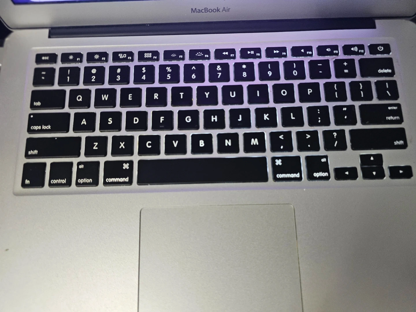 It's a silver Apple MacBook Air laptop. The screen is bright and clear, and the keyboard